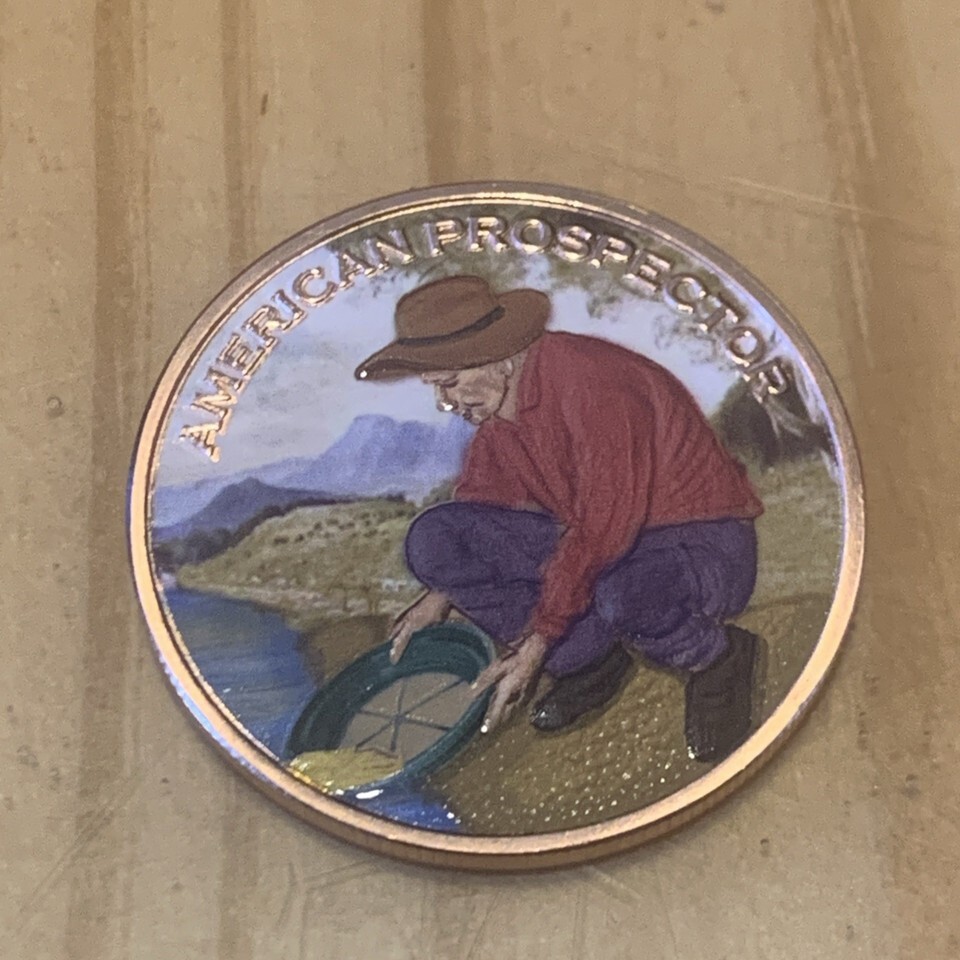 Reverse Proof Colorized Prospector 999 1oz Copper Round.