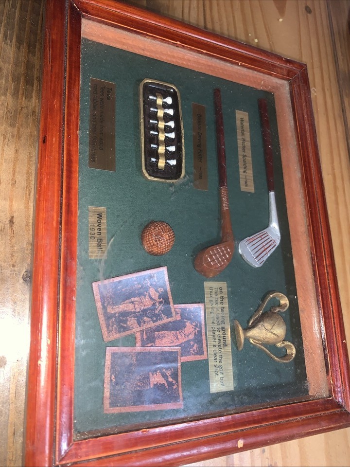 Vintage History of Golf Collectible Shadow Box Wood Framed Hanging Display Case