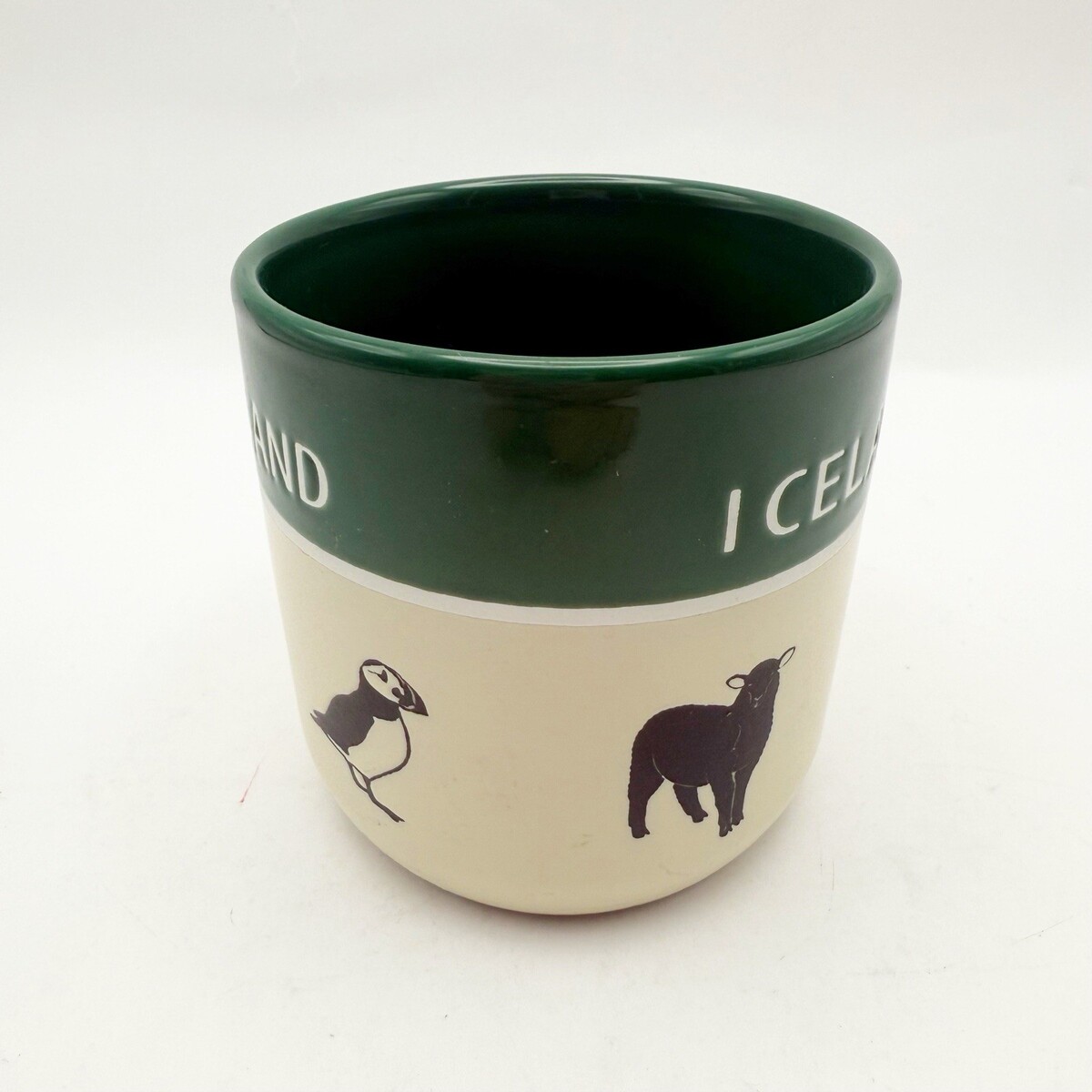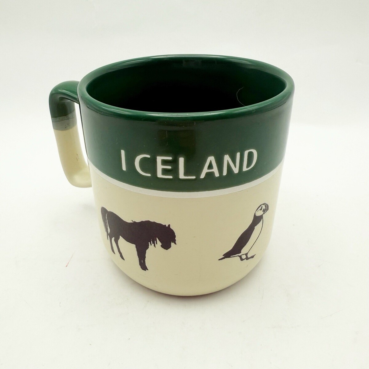 Stoneware Pottery Coffee Tea Mug Iceland Souvenir Green Ivory
