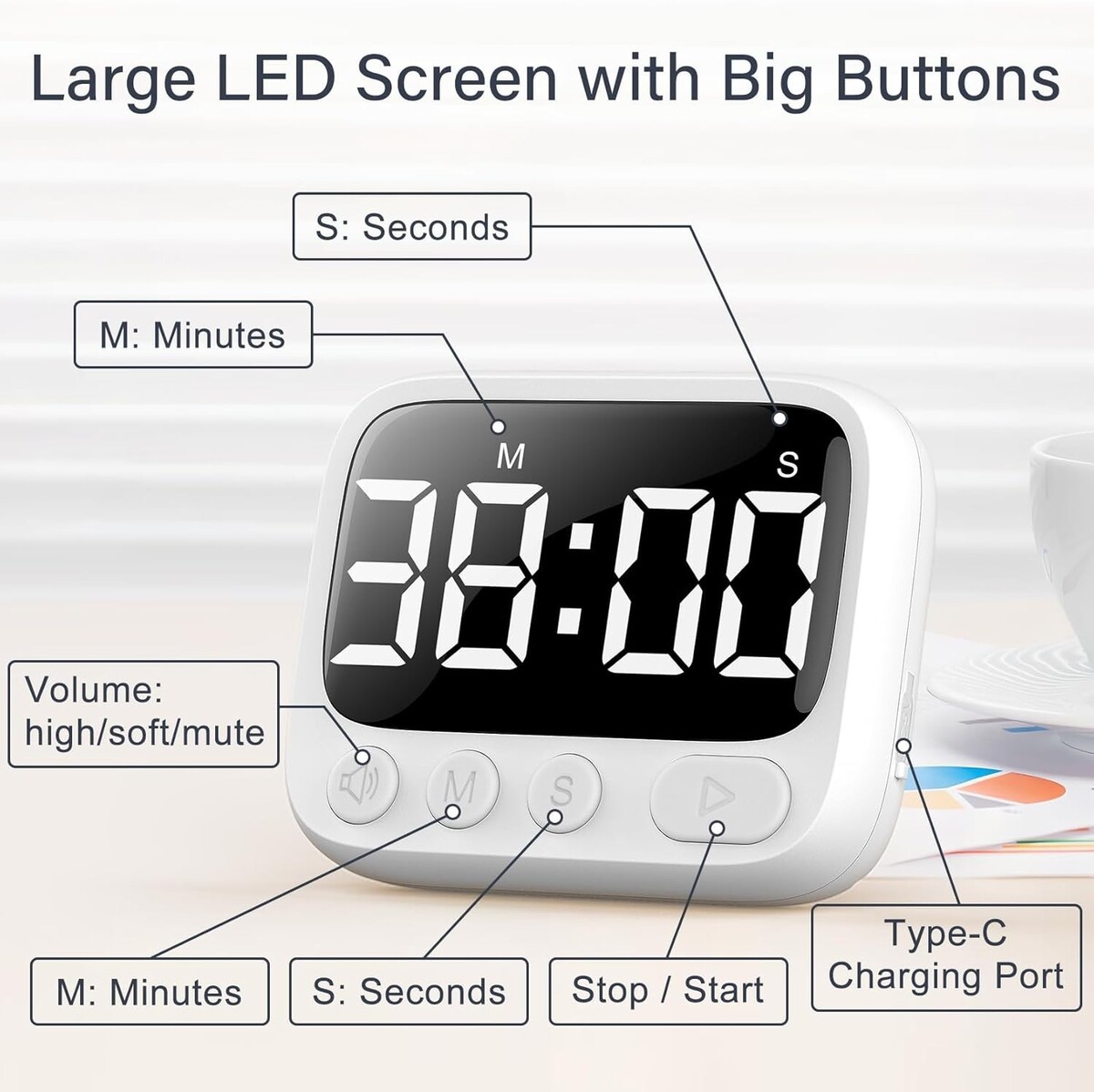 User-Friendly Design: Larger buttons for ease of use, a bright display, and adjustable volume settings ensure you won't miss your timer's alerts.