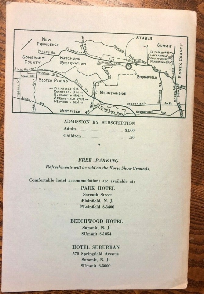 WATCHUNG STABLES (NJ) 24th Annual HORSE SHOW 12-page Prize List June 3-4, 1950