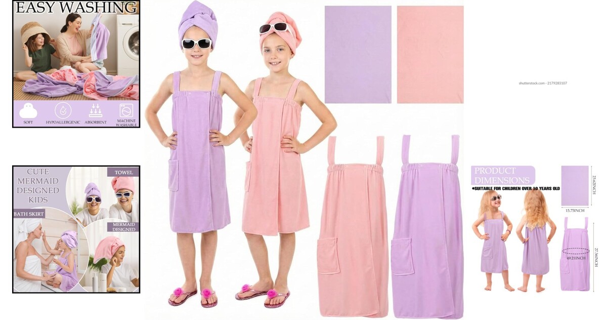Transform your bathing experience with our exquisite set of Microfiber Bath Towel Wraps for Girls, designed to blend functionality with vibrant style. This delightful set includes two beautifully crafted towel wraps in cheerful colors, perfectly suited for young fashionistas.