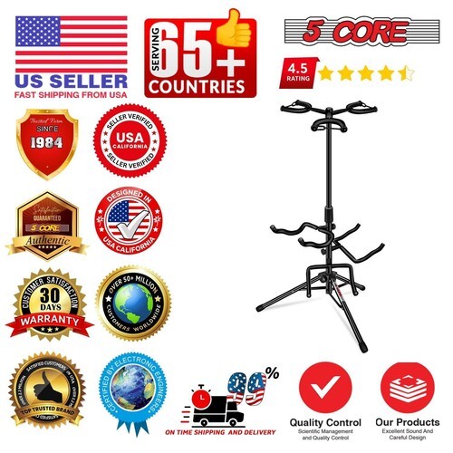 Keep your instruments safe, organized, and ready to play with the 5 Core Folding Guitar Stand. Built from durable metal with anti-corrosion paint, this universal floor guitar stand holds up to 3 guitars?perfect for electric, acoustic, bass, or even ukuleles. The adjustable height (17 to 25.5 inches) allows customized setup, while the tripod base and anti-slip feet ensure maximum stability. Soft padded contact points protect your instruments from scratches. Lightweight and foldable, it?s easy to store and carry?ideal for home, studio, or stage use. A reliable, space-saving solution for musicians seeking a high-quality multi-guitar stand.