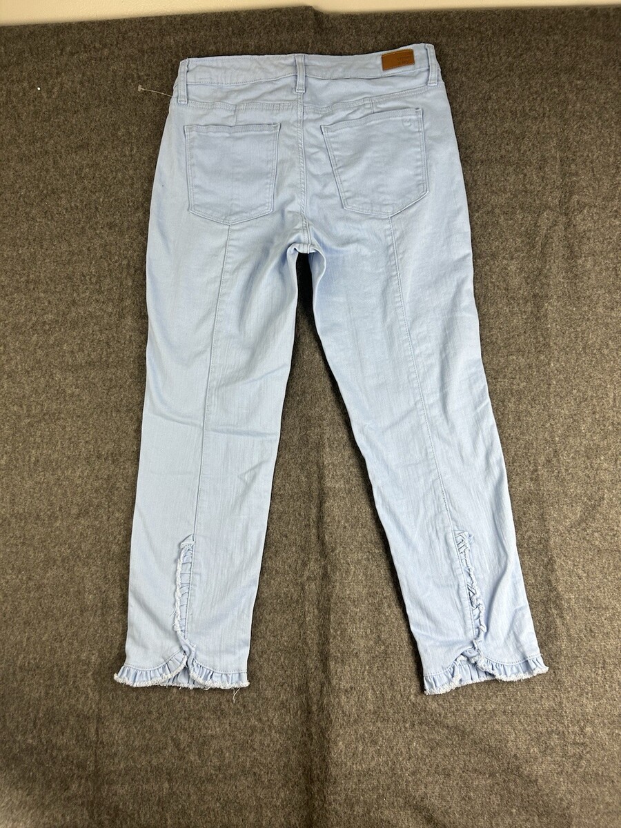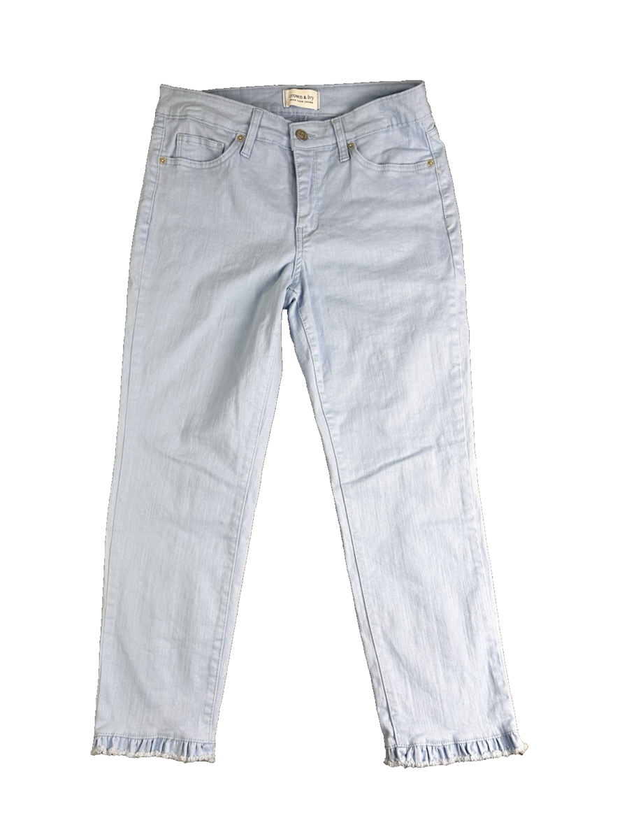Crown & Ivy Womens 4 Skinny Jeans Light Wash Frayed Hem Seam Detail