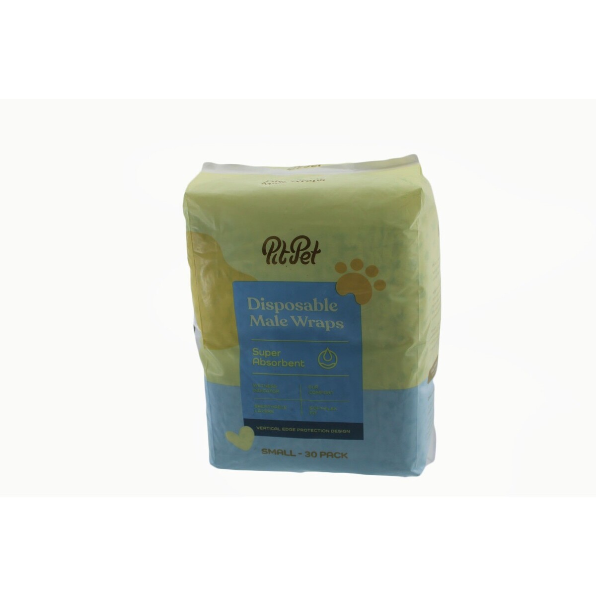 PitPet Disposable Male Wraps provide a reliable solution for managing male dog incontinence, excitable urination, or marking. These super absorbent wraps feature a wetness indicator that changes color to let you know when it's time for a change. Designed for comfort, they include fur-safe fasteners and a breathable outer layer to keep your pet dry and comfortable. The vertical edge protection design helps prevent leaks, making them ideal for travel or home use. This 30-pack of small-sized wraps is perfect for toy breeds and small dogs.
