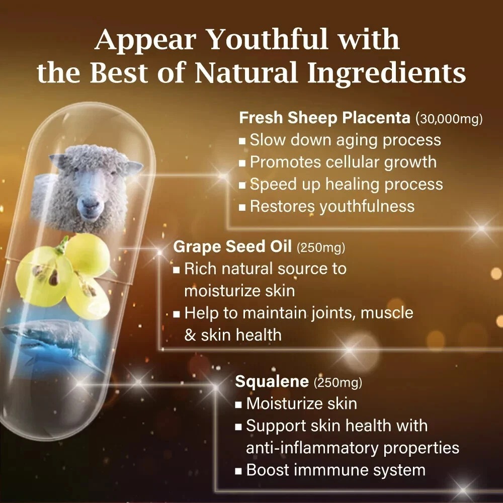 Sheep Placenta 30000mg x 60's, Cell Rejuvenating Therapy, Skin Regeneration DHL