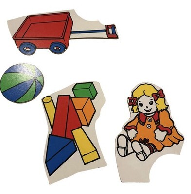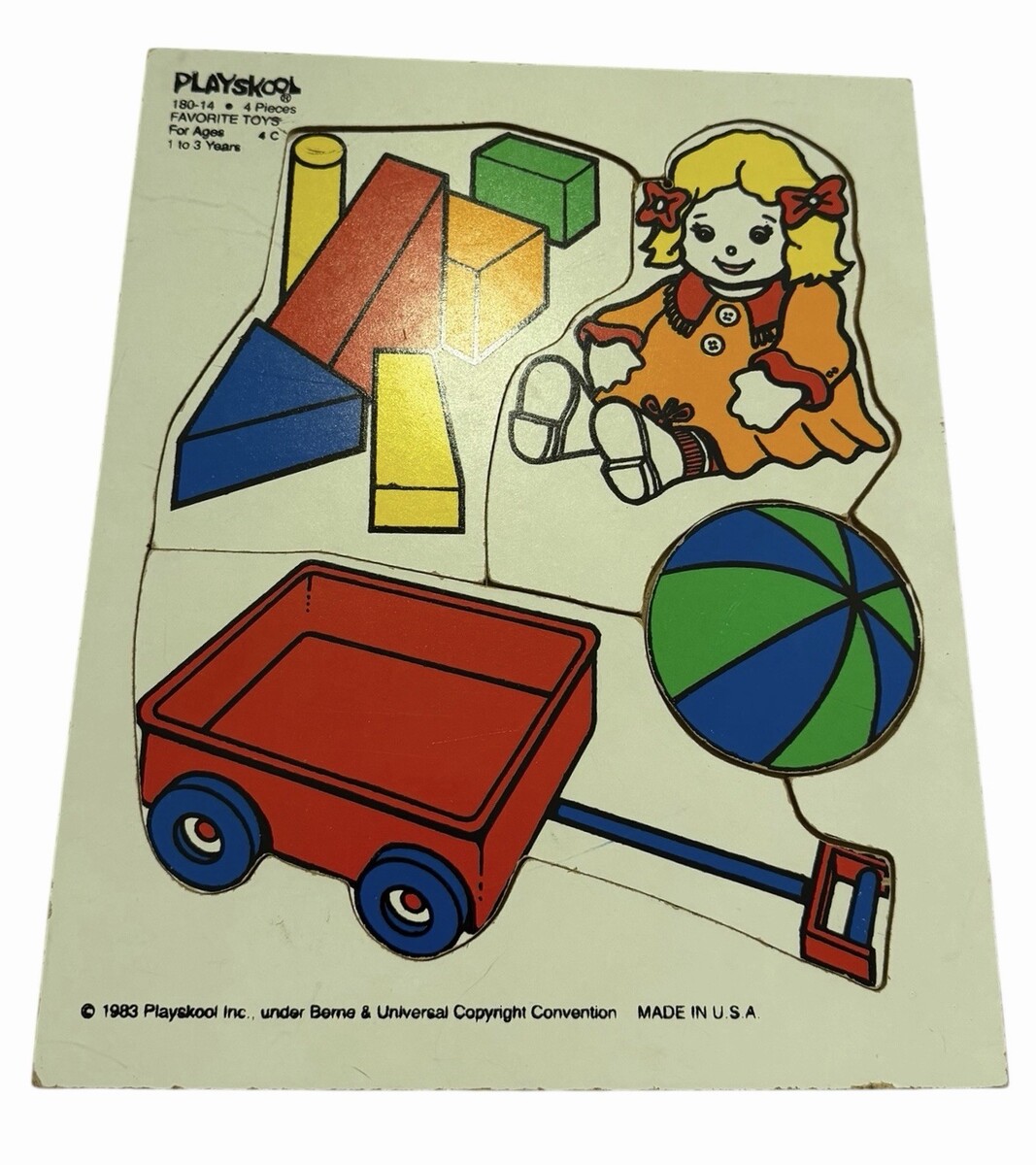 Vintage Wooden Playskool Puzzle 1980s Toy Wagon Ball Doll Blocks 4 Pieces