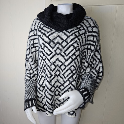 Wooden Ships Wool Mohair Blend Poncho Sweater Size M L Black Cowl Neck Pullover