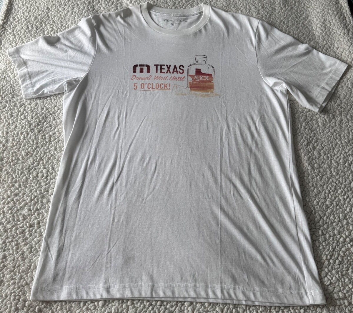Travis Mathew Texas Doen't Wait....Graphic Men's White 100%Cotton T-shirt Size L