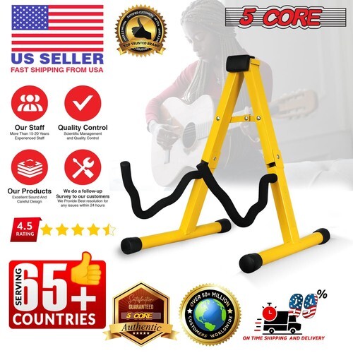 This heavy-duty A frame metal guitar stand floor offers unmatched stability and durability with its thick steel construction and reinforced welded joints. Adjustable to fit acoustic, electric, ukulele, and bass guitars, this guitar support features soft padding to protect against scratches and dents.