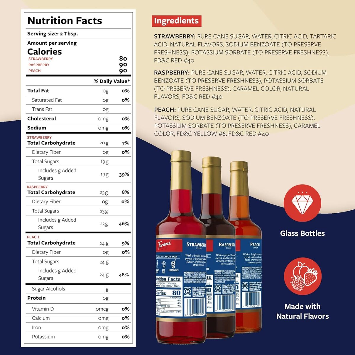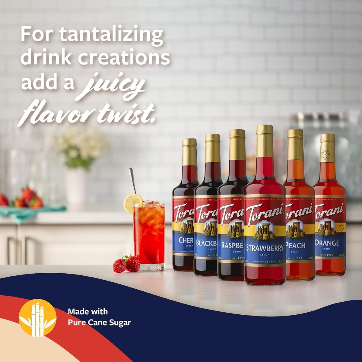 VERSATILE TORANI SYRUPS: Torani Syrup, made with pure cane sugar and natural flavors, adds an unforgettable flavor twist and vibrant color to icy refreshments, including cocktails and mocktails.