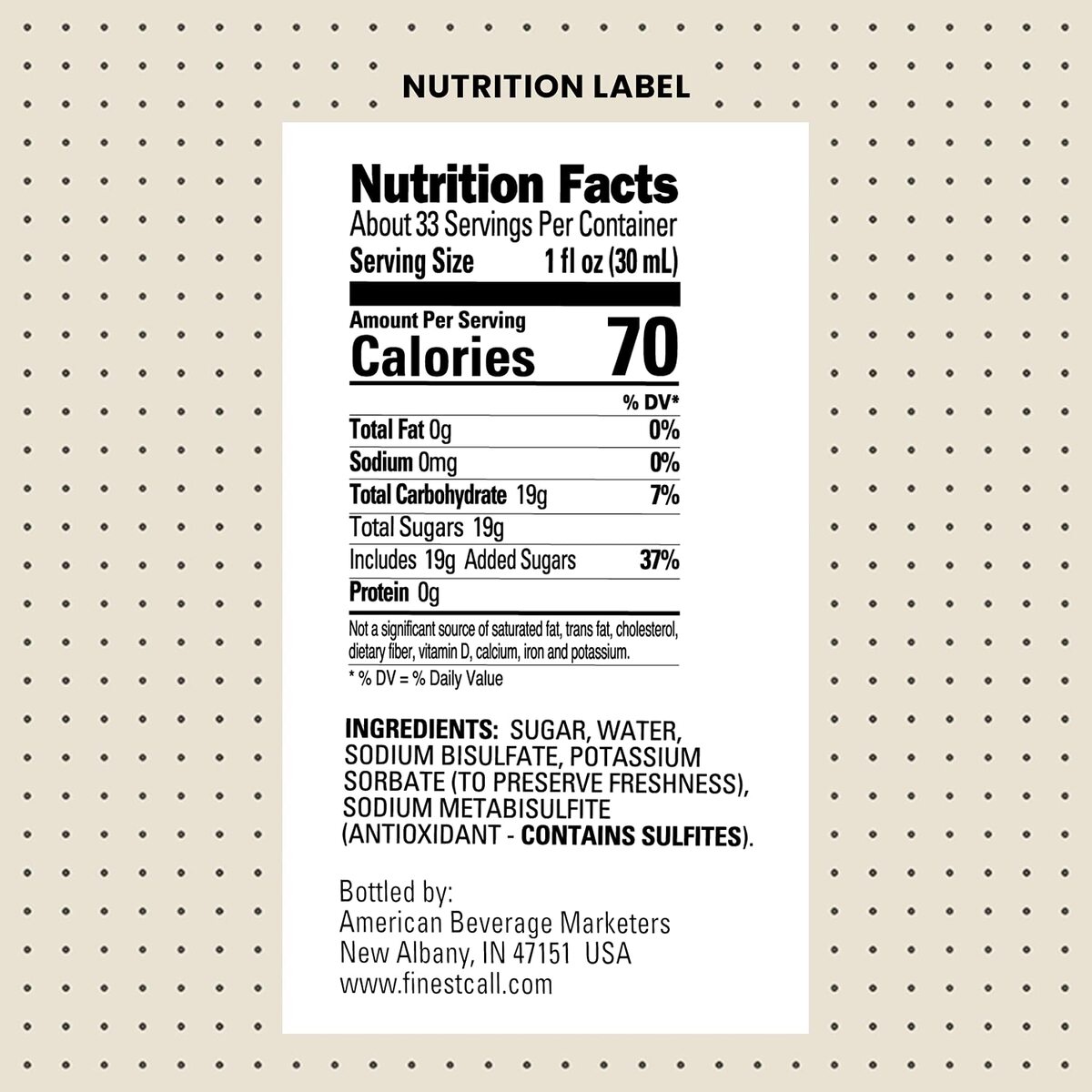 Finest Call Premium Pure Cane Sugar Simple Syrup Mix 1 Liter Bottles Pack of 6