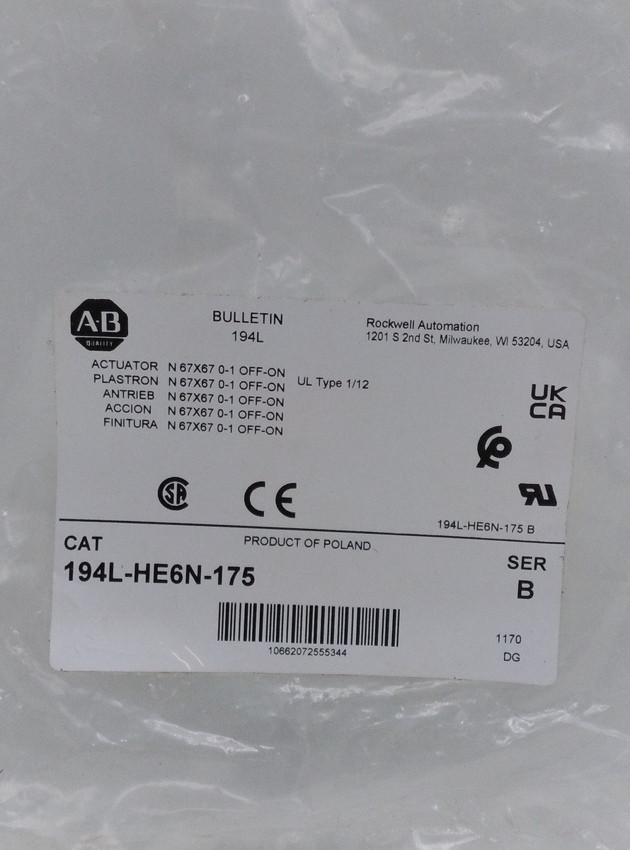 Allen-Bradley 194L-HE6N-175 SER.B On-Off and similar items