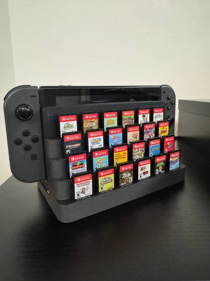 Keep your Nintendo Switch game collection perfectly organized and easily accessible with this sleek storage stand. This durable black holder is designed with three tiers, providing dedicated slots to display up to 24 of your favorite game cartridges. Its compact, tiered design allows you to quickly see and select your games while keeping them safe and secure in one place. An essential accessory for any Switch owner, this stand helps declutter your gaming setup and protect your valuable game cards.
