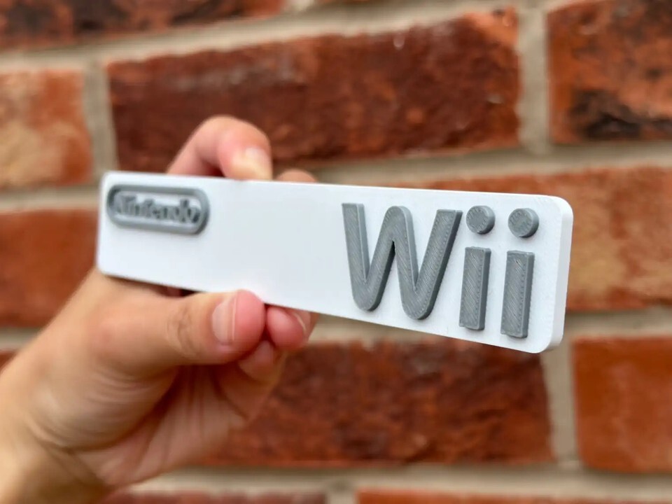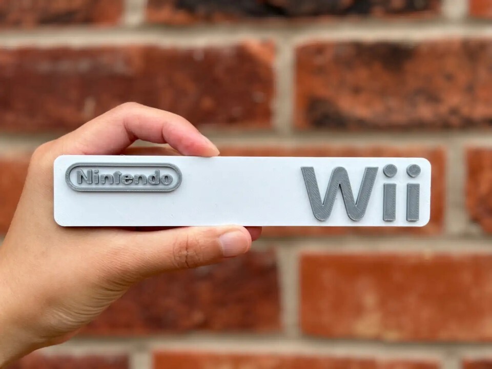 Enhance your gaming setup with this stylish Nintendo Wii 3D printed sign. This decorative plaque features the iconic Wii logo in grey lettering on a clean white background, perfect for displaying on a shelf or desk. Its classic design makes it a standout piece of memorabilia for any retro video game enthusiast. Add this unique collectible to your game room or man cave to showcase your love for the classic Nintendo console.