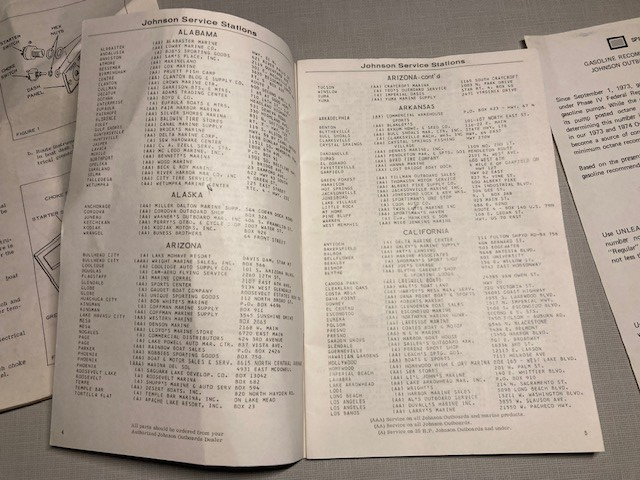1974 74 JOHNSON OUTBOARD MOTOR CLASSIFIED DEALER SERVICE DIRECTORY/Addendums Good over all. Please refer to images.