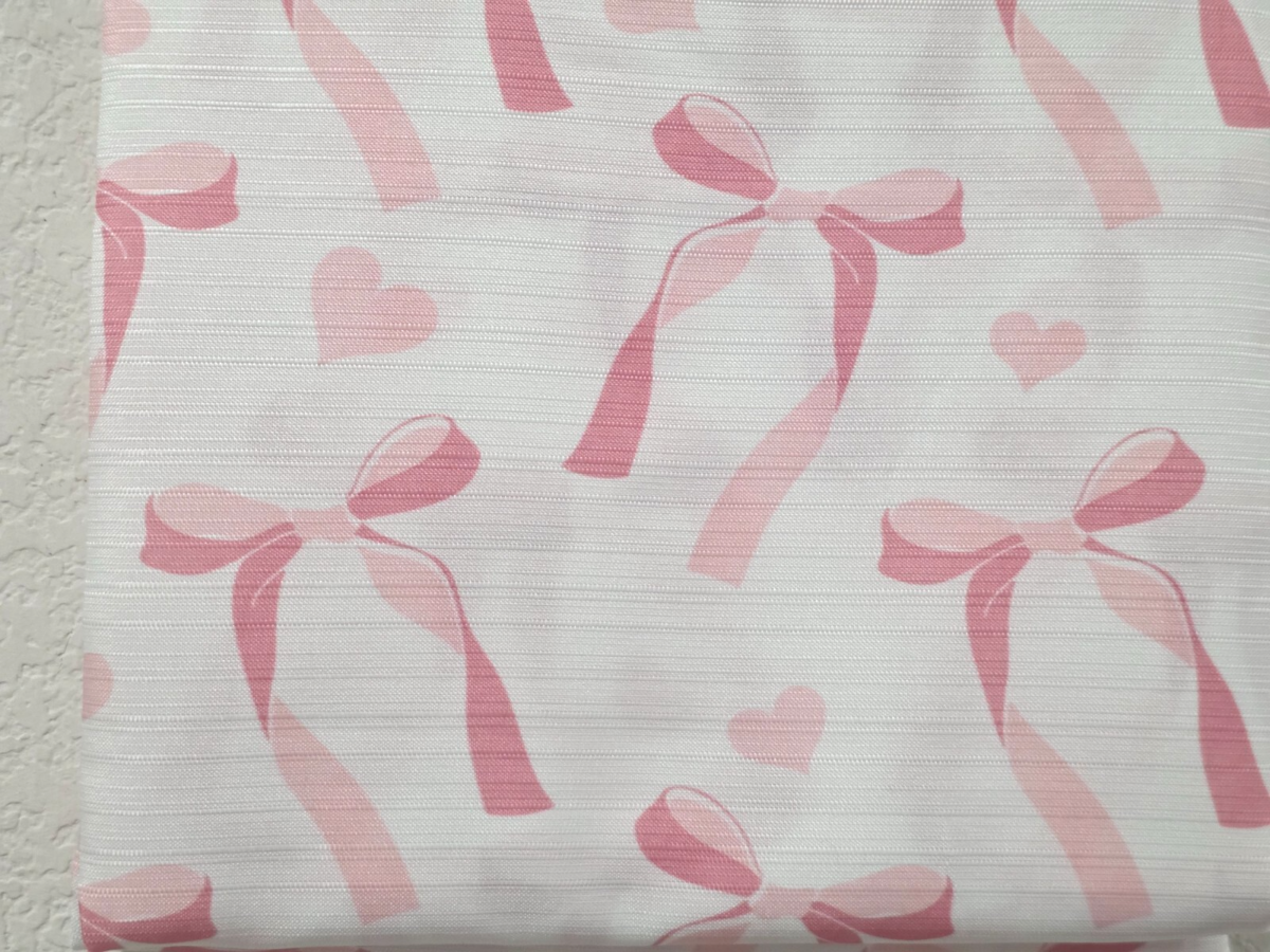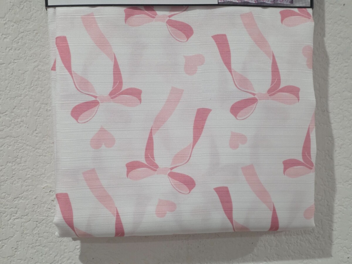 Up for sale we have this gorgeous pink bows shower curtain for your bathroom decor. The shower has pink bows. It's a beautiful curtain. 100% Polyester/