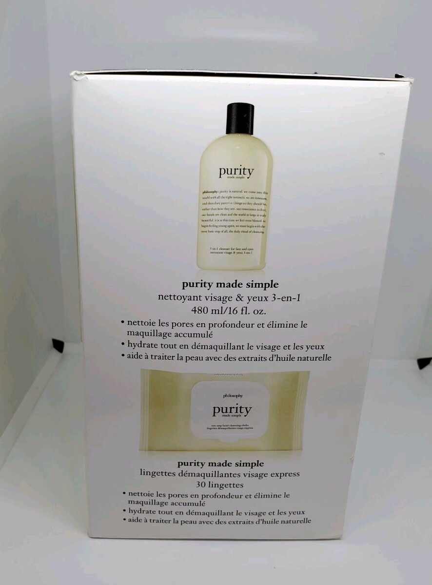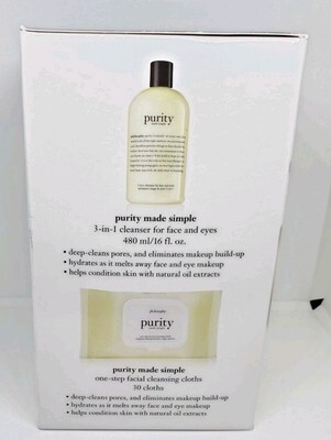 Set includes 1 -16oz. Purity made simple 3 in one cleanser 1- 30ct pack one step Facial Cleansing Cloths.