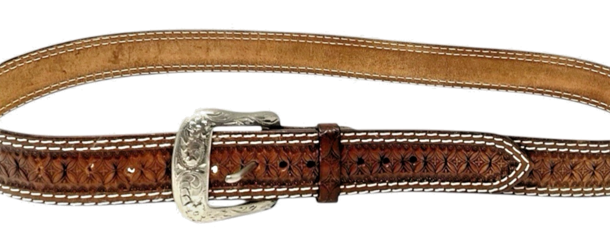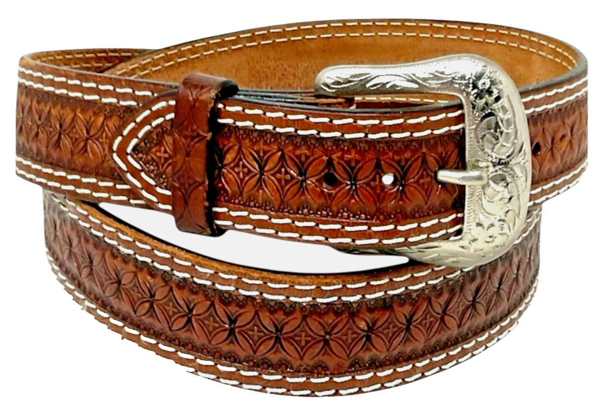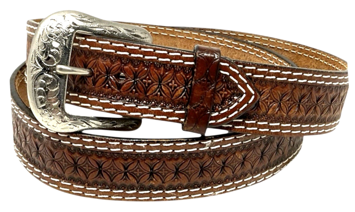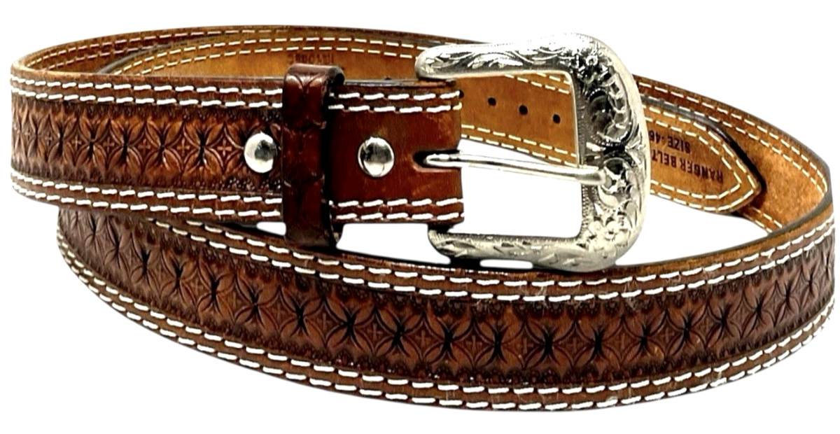 Ranger Belt Co IB1008C Men’s Western Concho Belt SZ 46 Brown Hand‑Tooled Leather