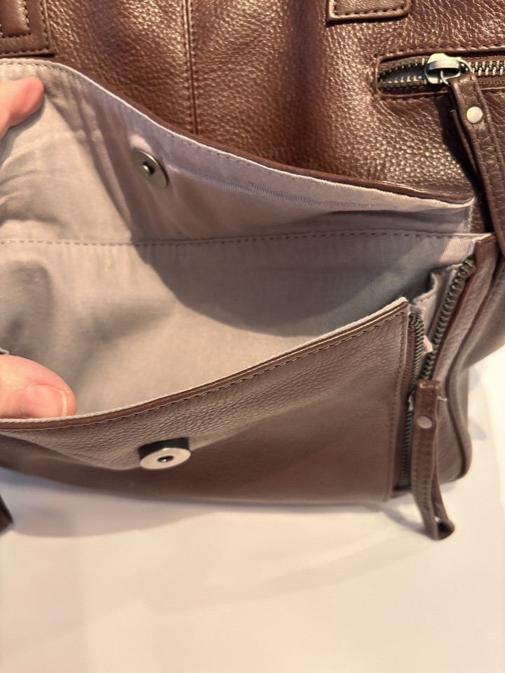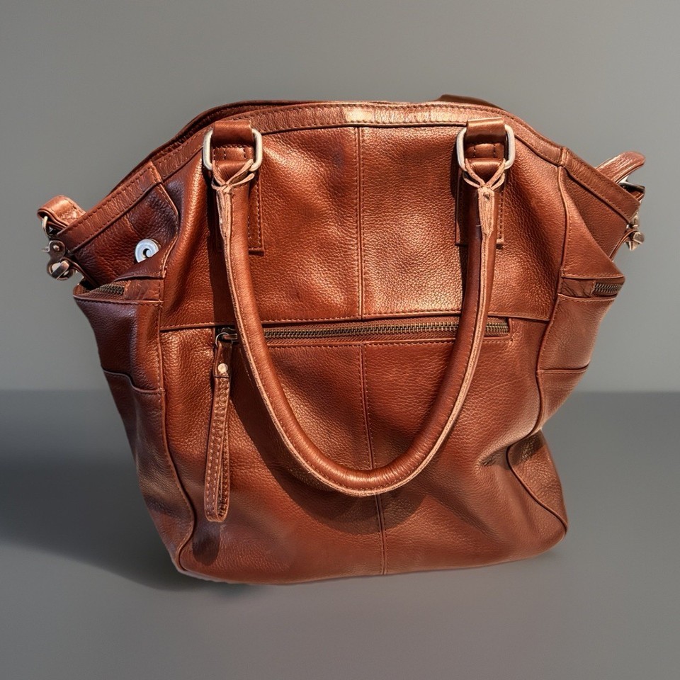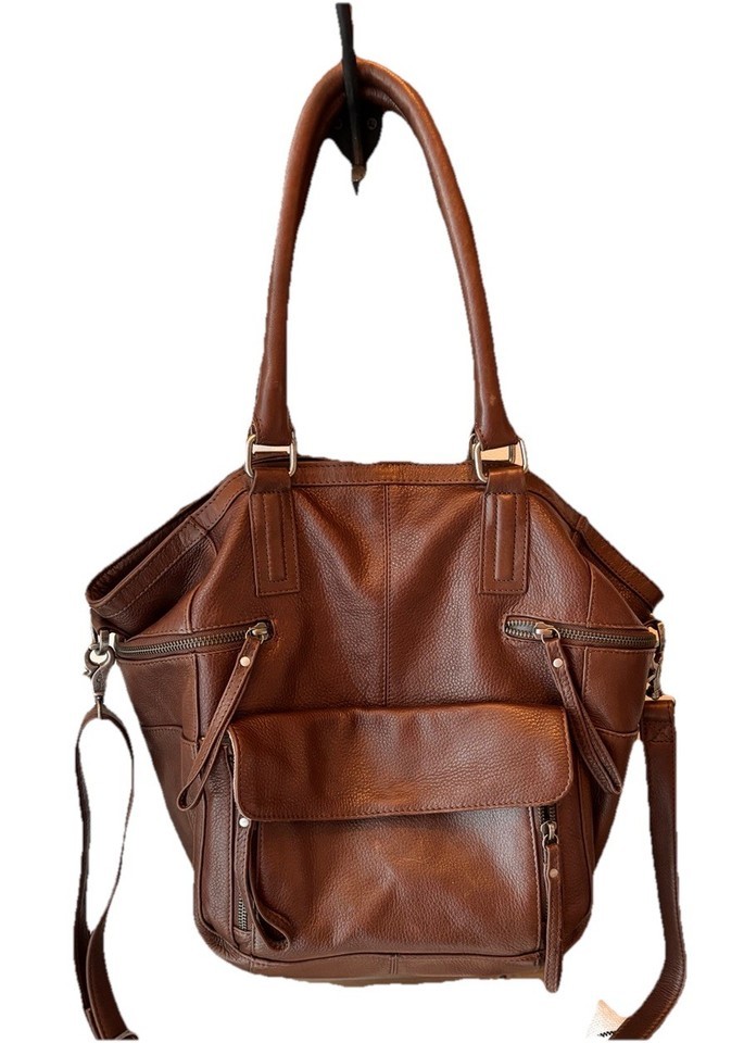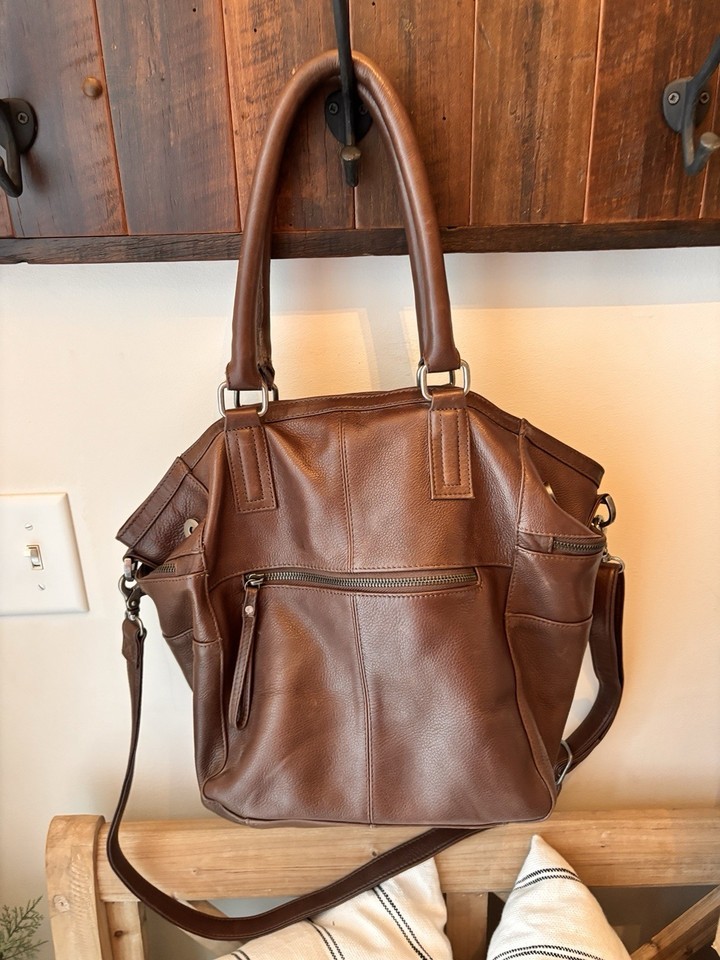 Day & Mood Brown All Leather 2 Way Shoulder Bag Purse Double Handle Hannah