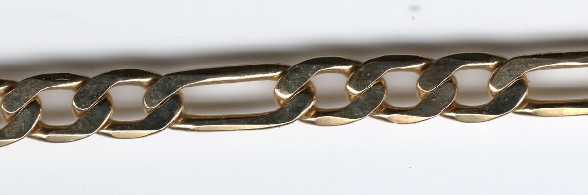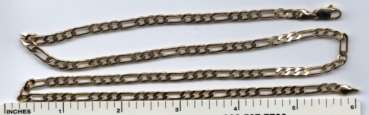 14k Yellow Gold 23oe" 3.5 mm width Figaro Chain 11 grams. Excellent condition.