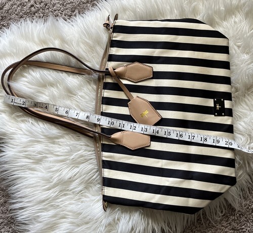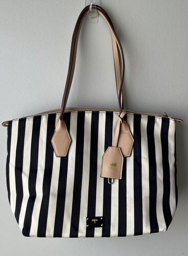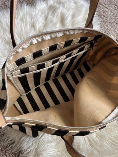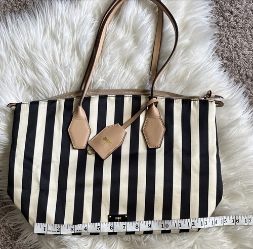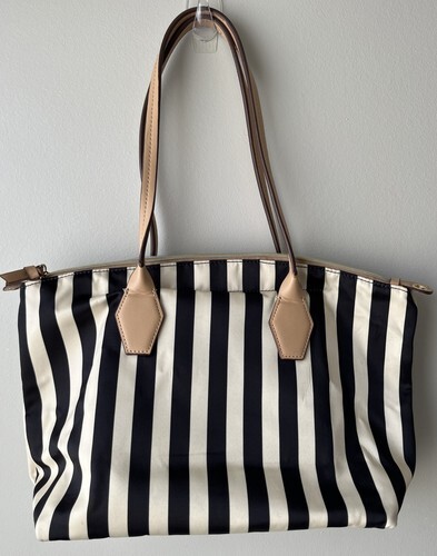 Kate Landry Striped Handbag Tote - Beige Black Stripes. Condition is Pre-owned. Shipped with USPS Priority Mail.