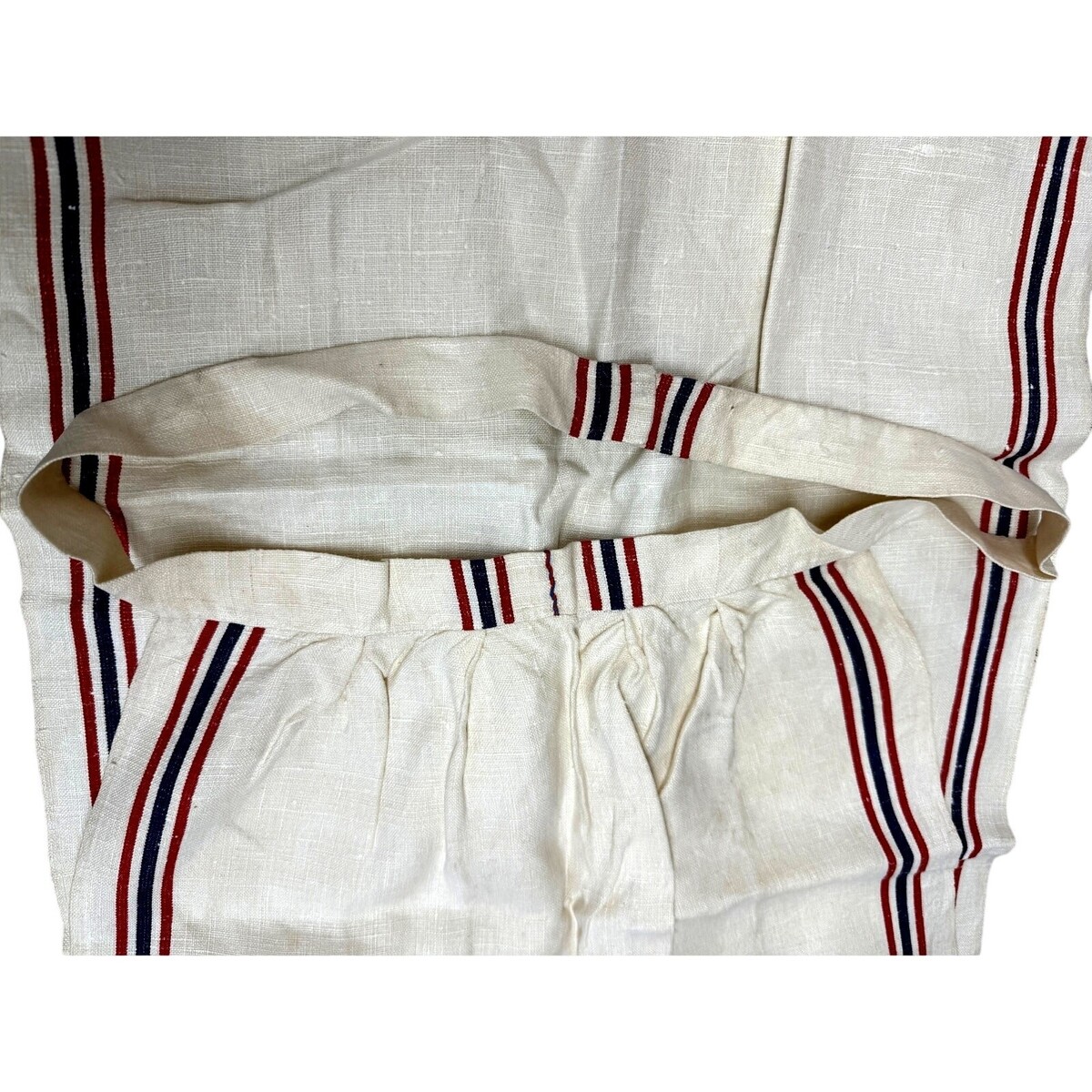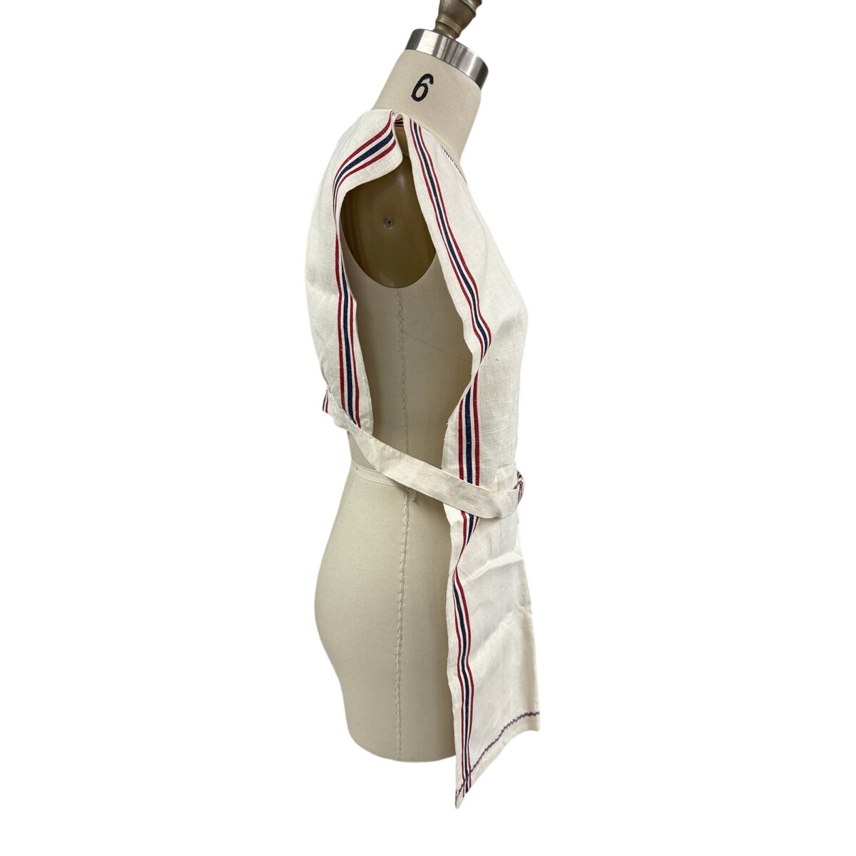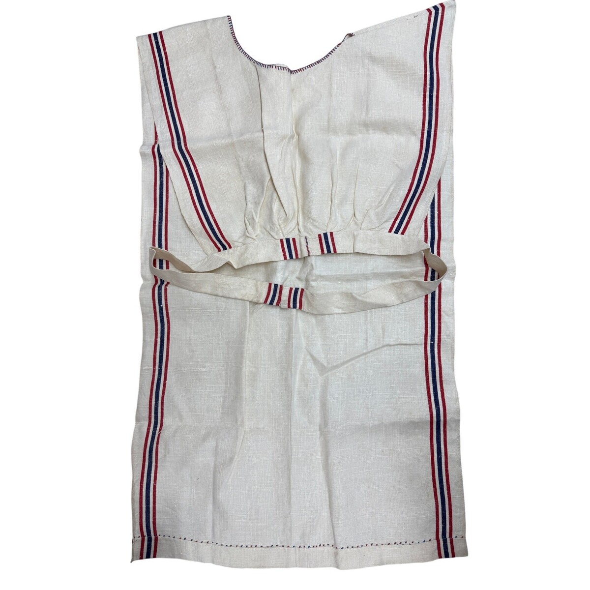 Antique Pinafore Apron Primitive Linen Red White Blue Show Towel Apron