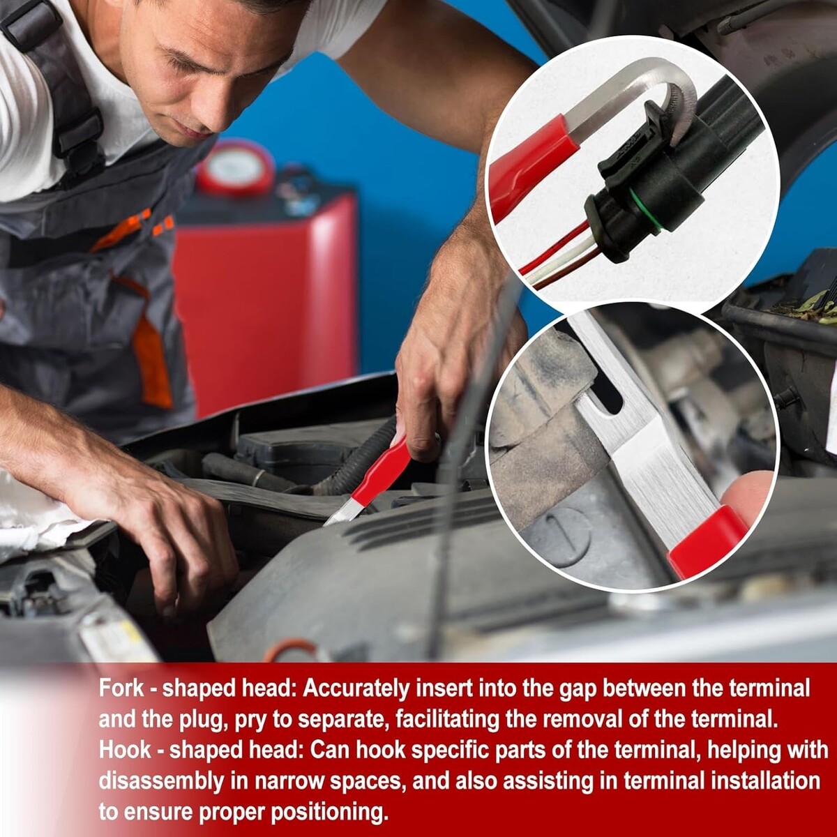 Damage-Free Electrical Disassembly Tool: This terminal separator ensures safe removal of electrical plugs fuel injectors push tab connectors and sensor connectors It reaches tight areas and narrow spaces that screwdrivers or interior tools can hardly access providing smooth operation for both professional mechanics and DIY vehicle owners