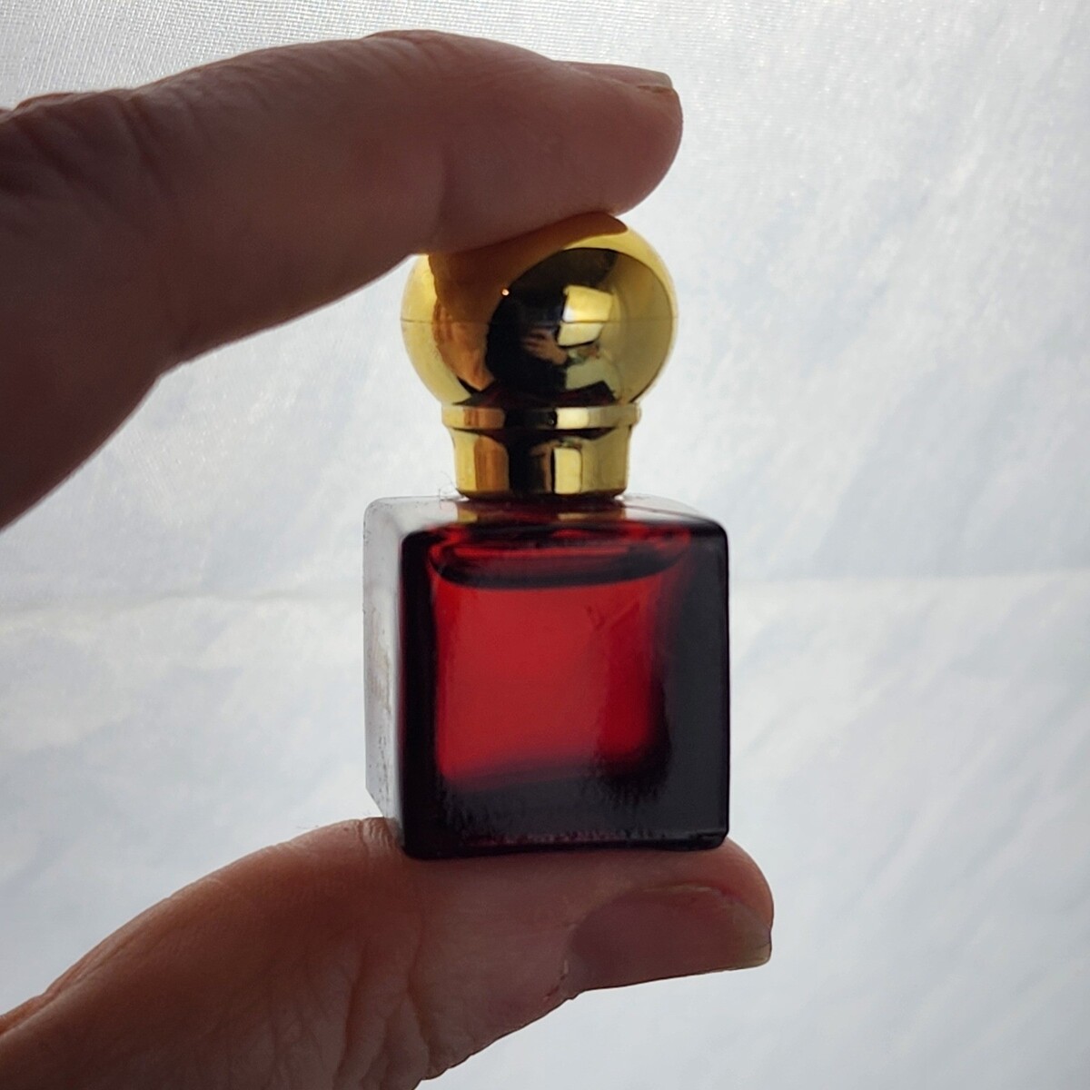 Keywords: Vintage Perfume, Miniature Fragrance, Collectible Bottle, 1980s Aesthetic, Classic Scent, Travel Size, Rare Beauty, Designer Fragrance, Cosmair Era, Red Glass Bottle