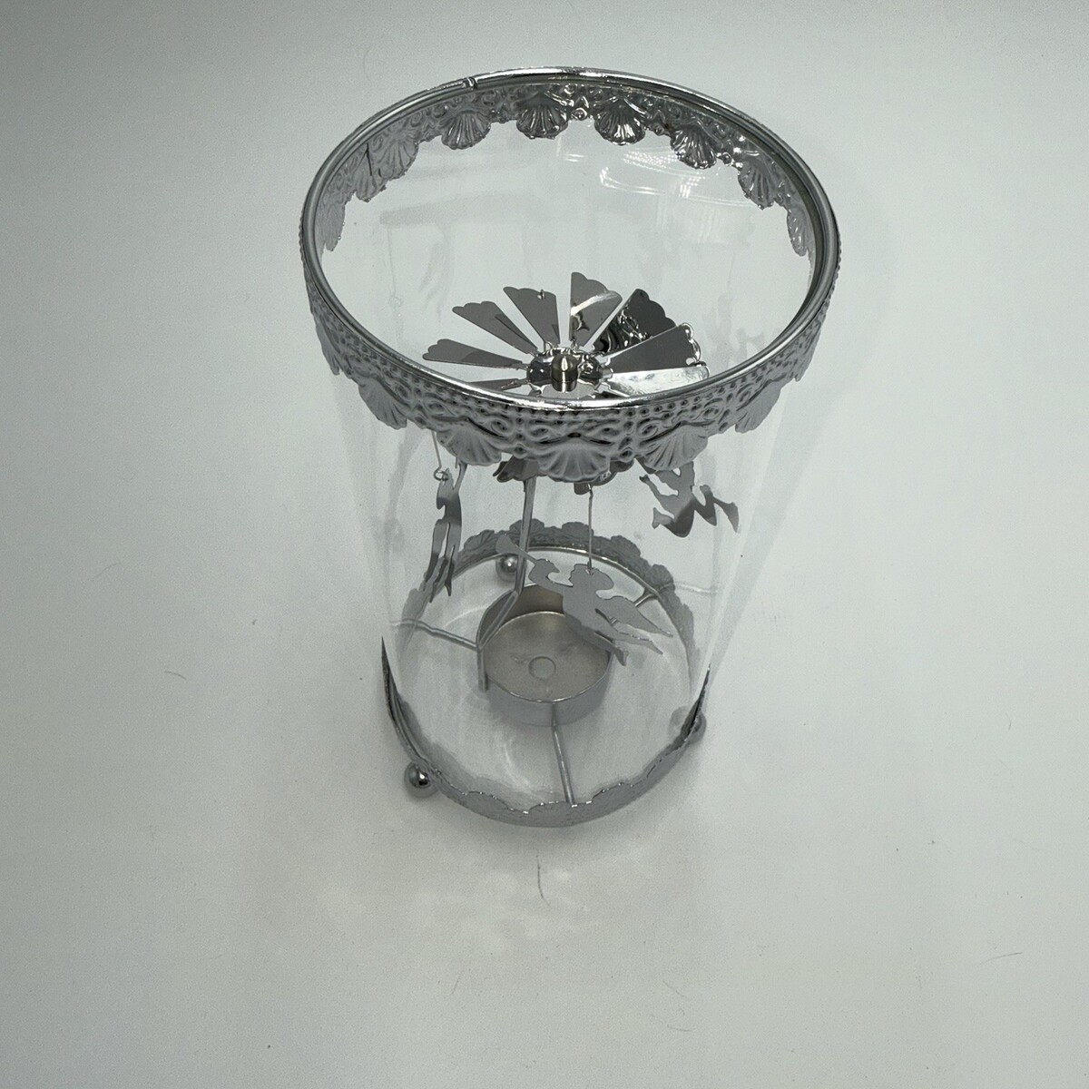 Silver Angel Tea Light Candle Carousel Spinner Glass Hurricane Decor