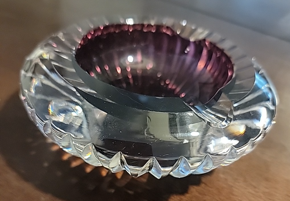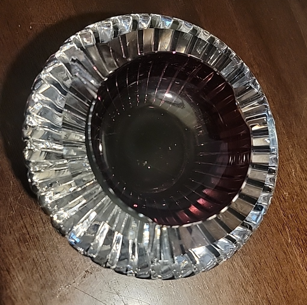 Vintage AMETHYST Center to Clear Crystal Glass Ashtray Heavy
