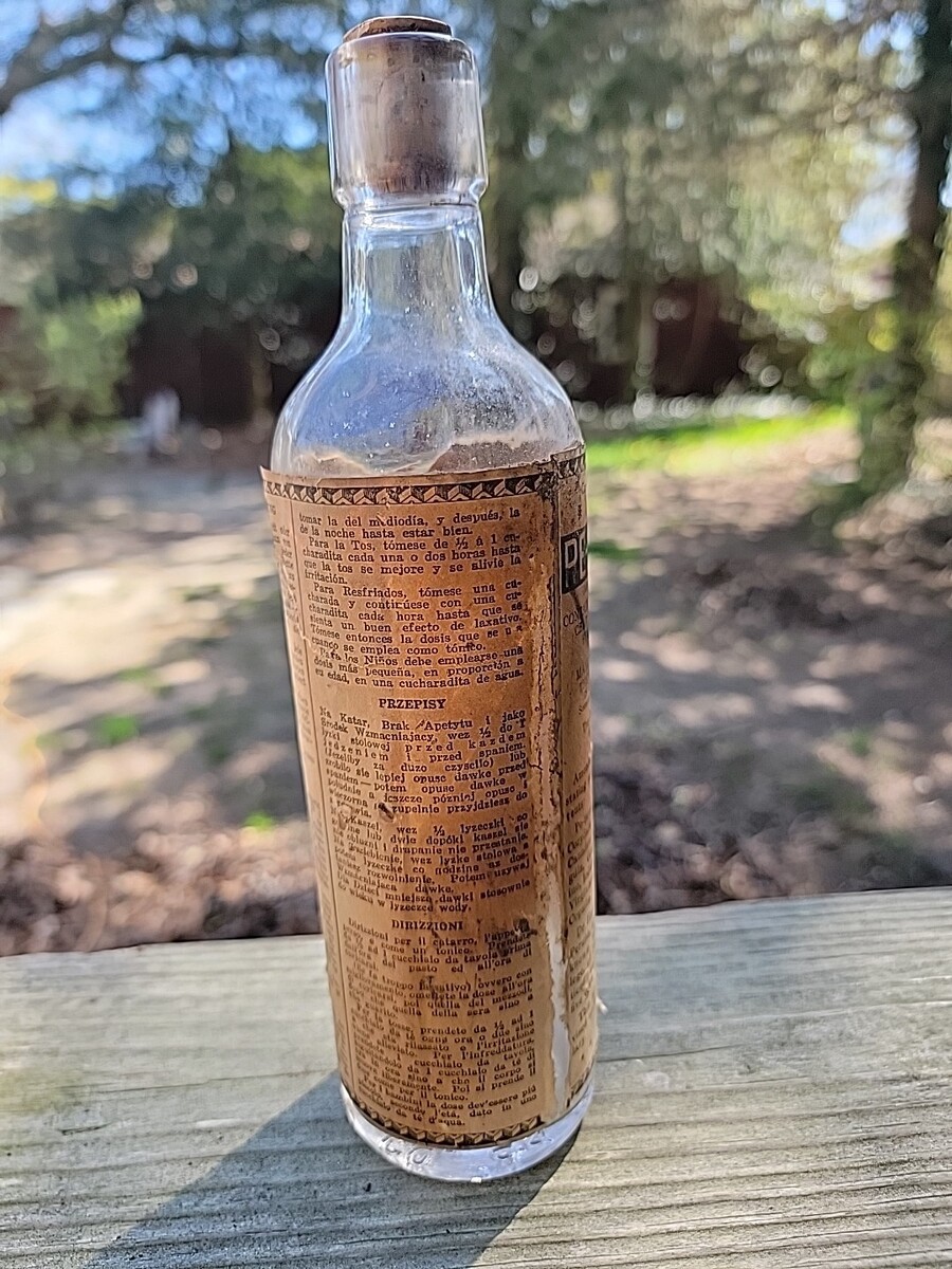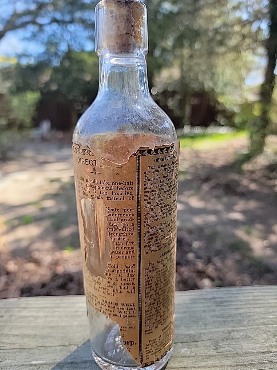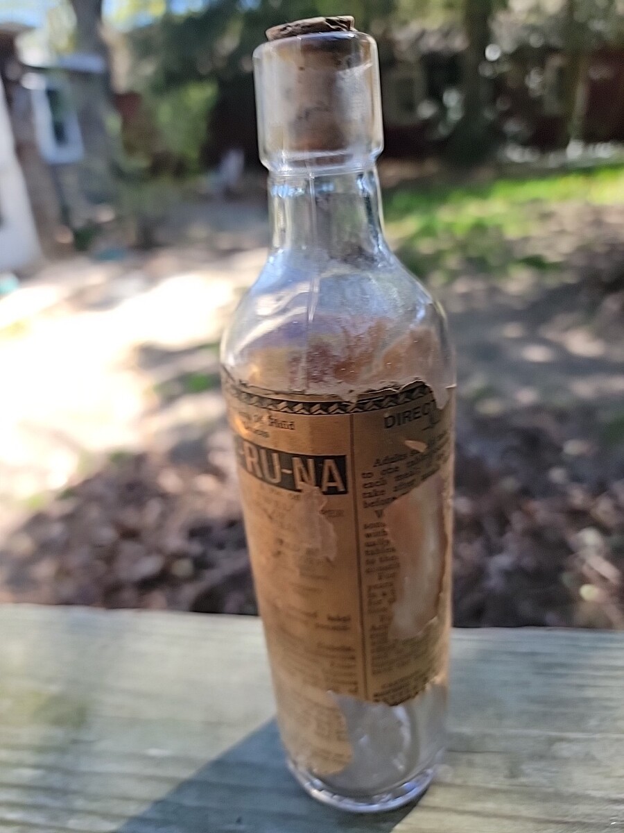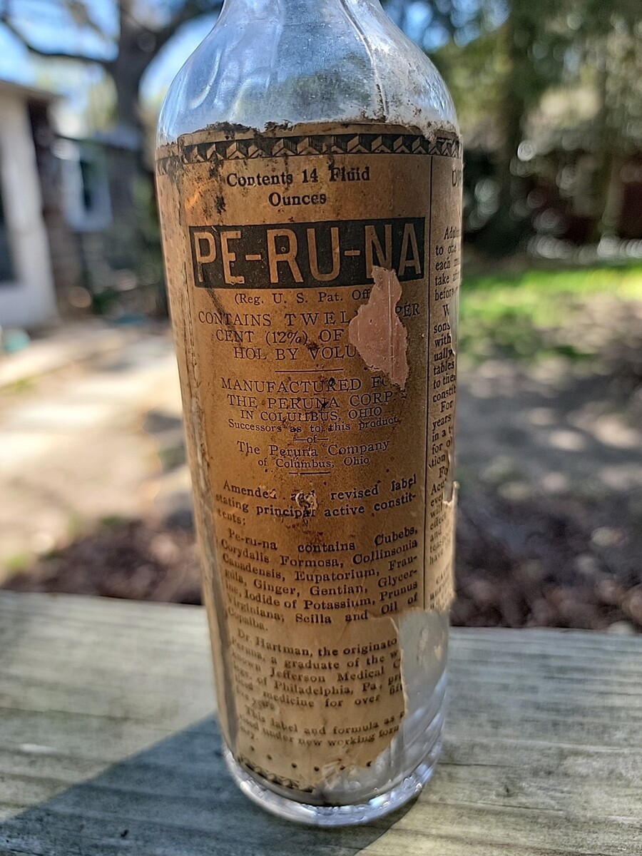 Vintage PE-RU-NA Elixer Bottle W/ Partial Label