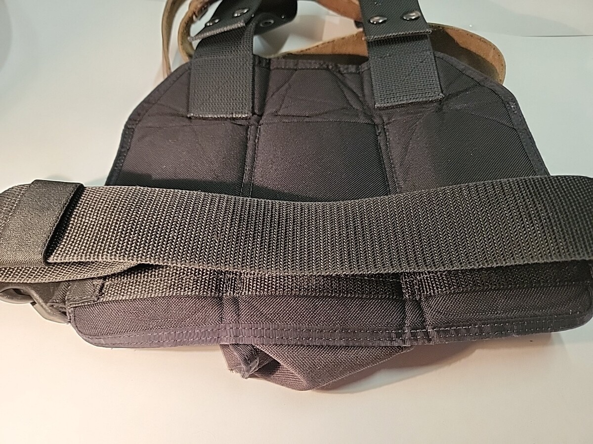 Not exactly sure of the model number of this it is used but in good condition with some minor staining the straps look good no holes it also comes with the main leather strap that goes around the waist please see pictures for condition