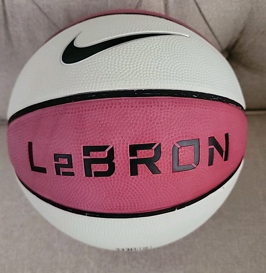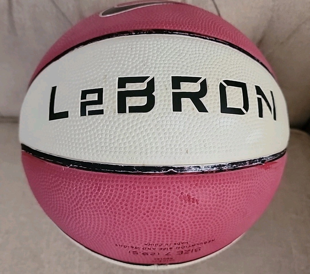 The product is a rare LeBron James Nike Size 7 mini basketball in red and white colors. This officially licensed NBA basketball is designed for unisex adults and features the iconic LeBron team colors. Made with 18 oz capacity, this basketball is perfect for regular season games and showcases the LeBron James brand. This collectible item is a must-have for fans of the basketball legend.
