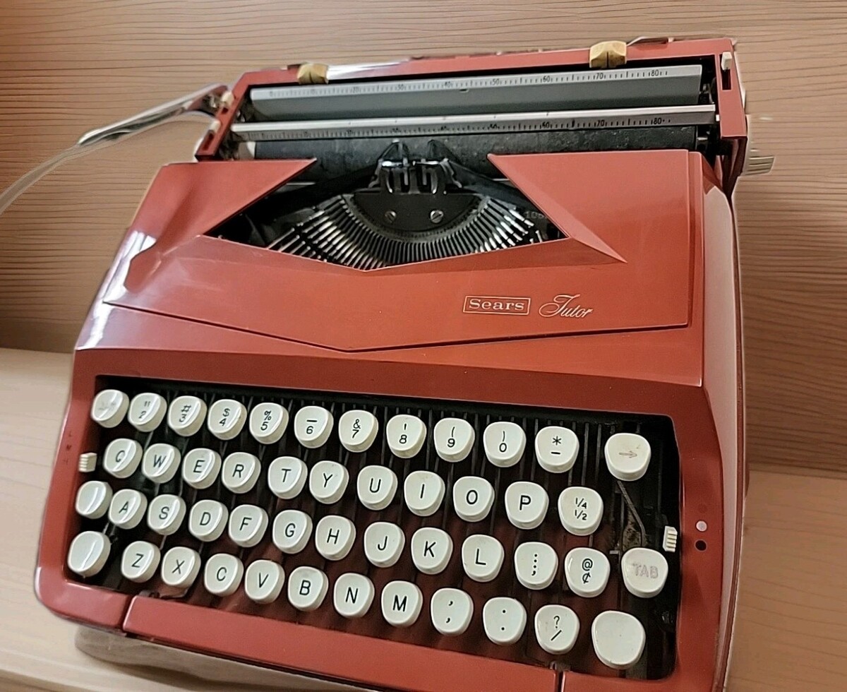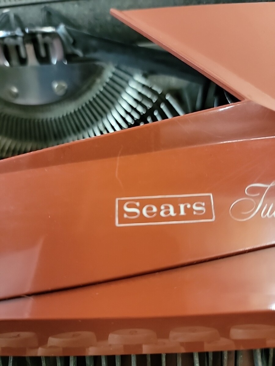 Vintage 1970s Sears Tutor Portable Typewriter Burnt Orange with Case
