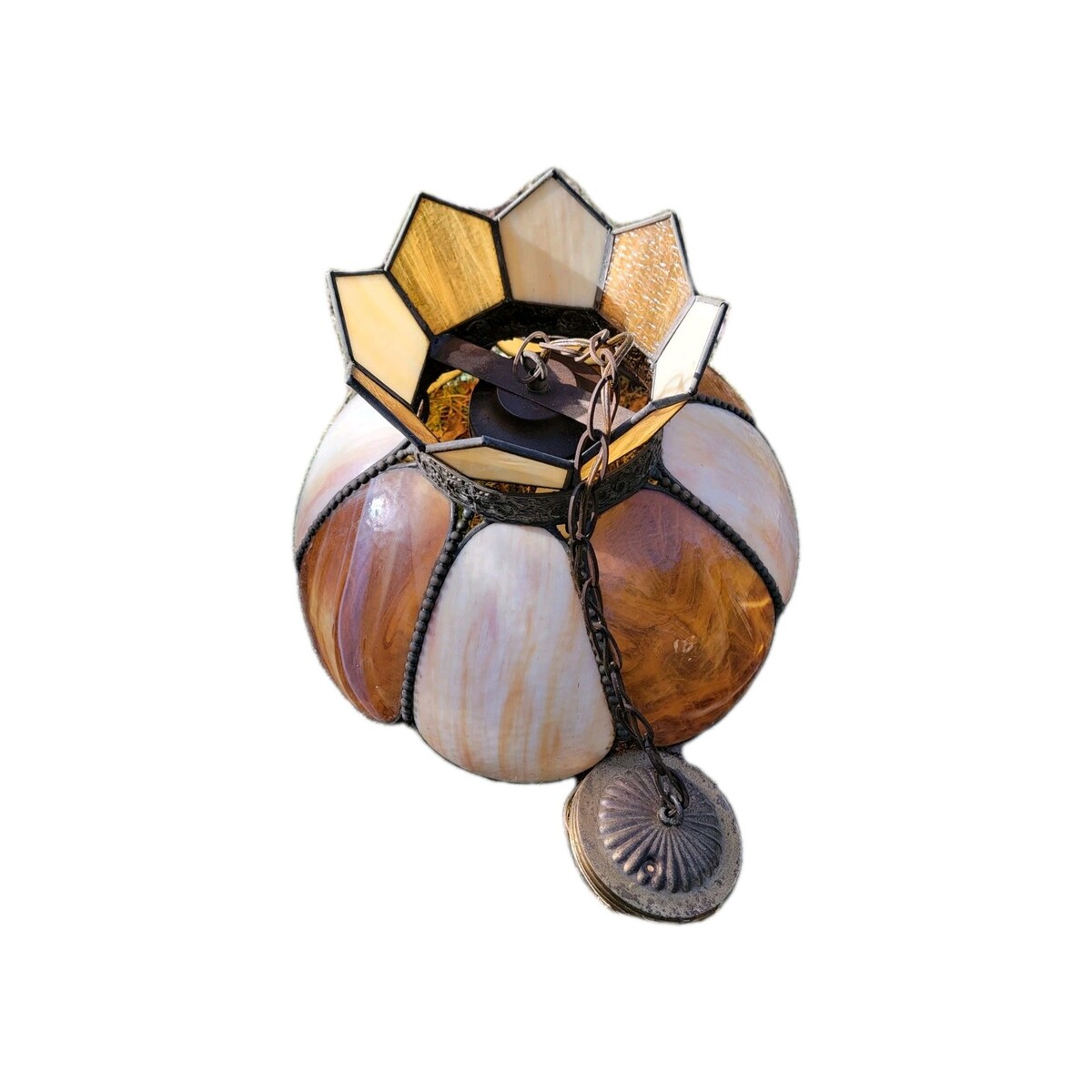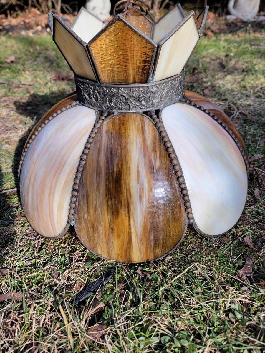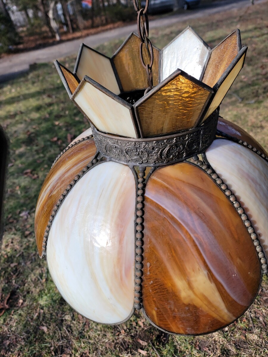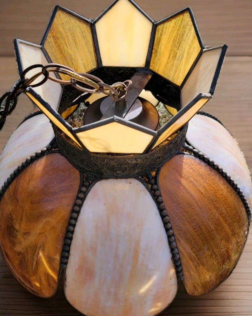 Vintage Swag Tulip Slag Glass Lamp Drop Light Pendant Hanging Brown Cream