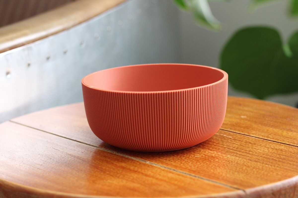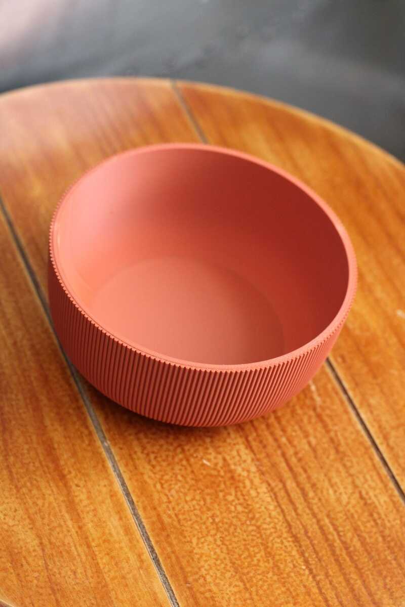 This decorative bowl is 3D printed and features a modern ribbed design, perfect for adding a minimalist and stylish touch to your space.