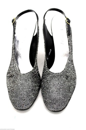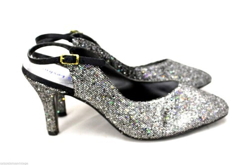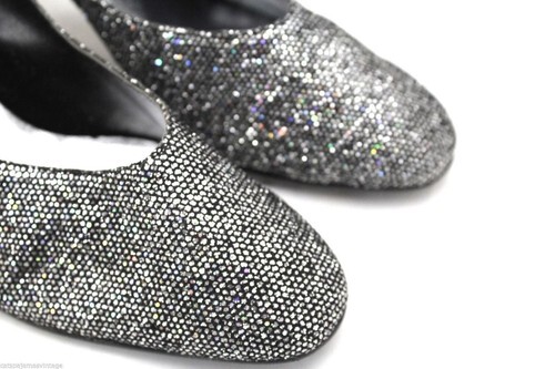 Vtg RETRO 1960s Jacques Levine Heels Slingback Silver Sparkle Evening NIB 7M