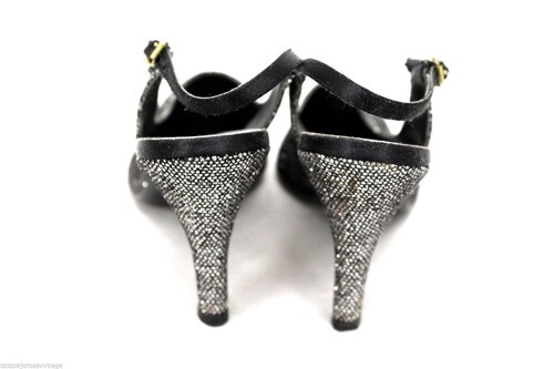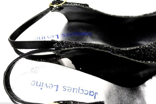 Fab vintage Jacques Levine slingback evening heels in new, never worn condition- Marked Size: 7M. They have tiny faceted stones glued all over in an even pattern and pick up all kinds of colors- can?t pick it up on the camera.