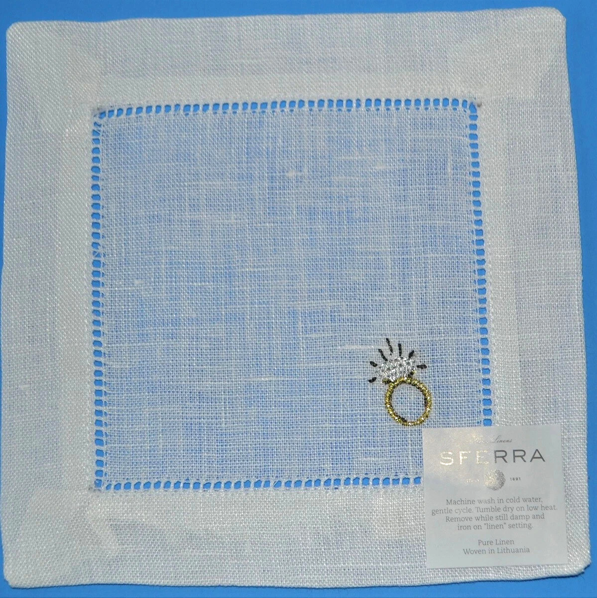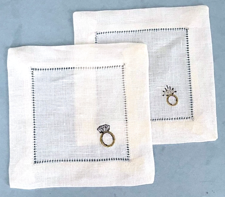 Sferra Embroidered Engagement Ring Design Linen Cocktail Napkins 6x6" SET/4 New