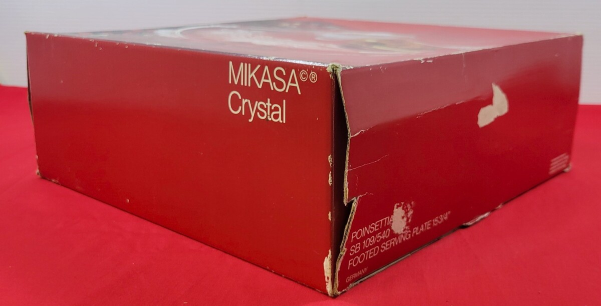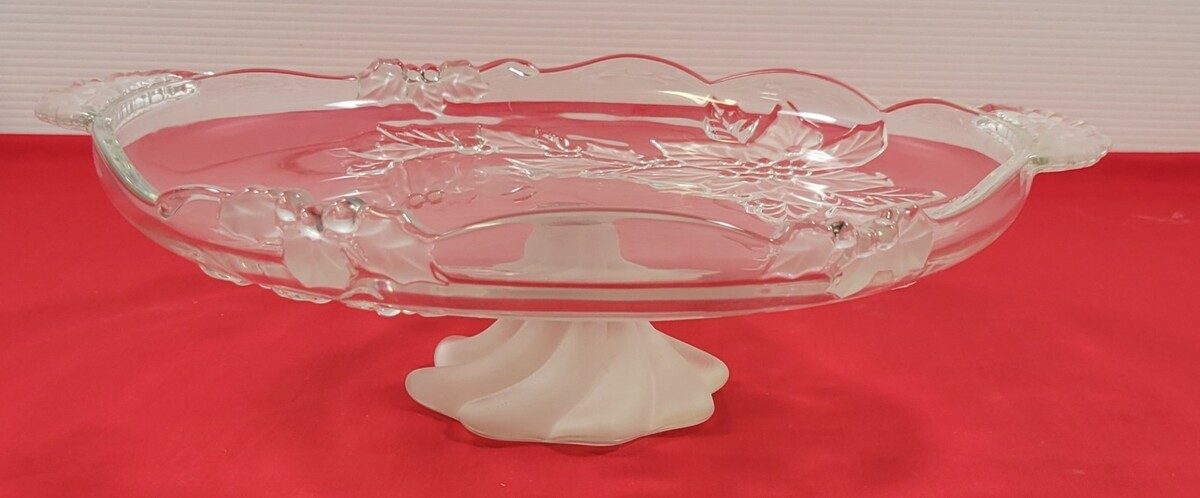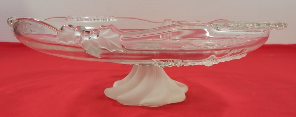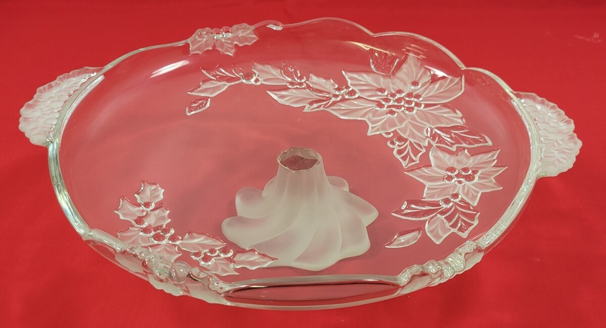 *A) Mikasa Crystal Christmas Poinsettia Footed Pedestal Serving Plate Germany