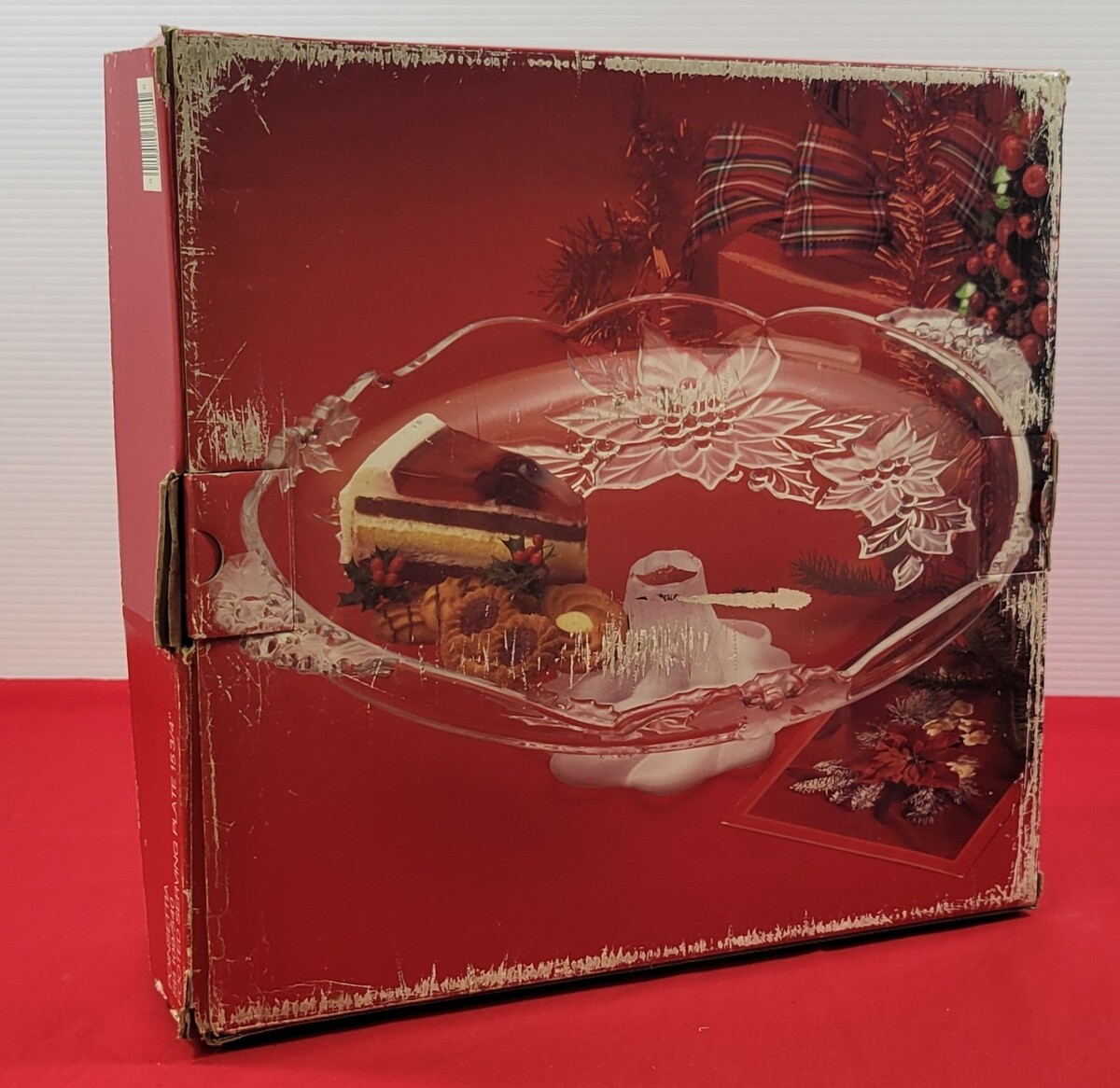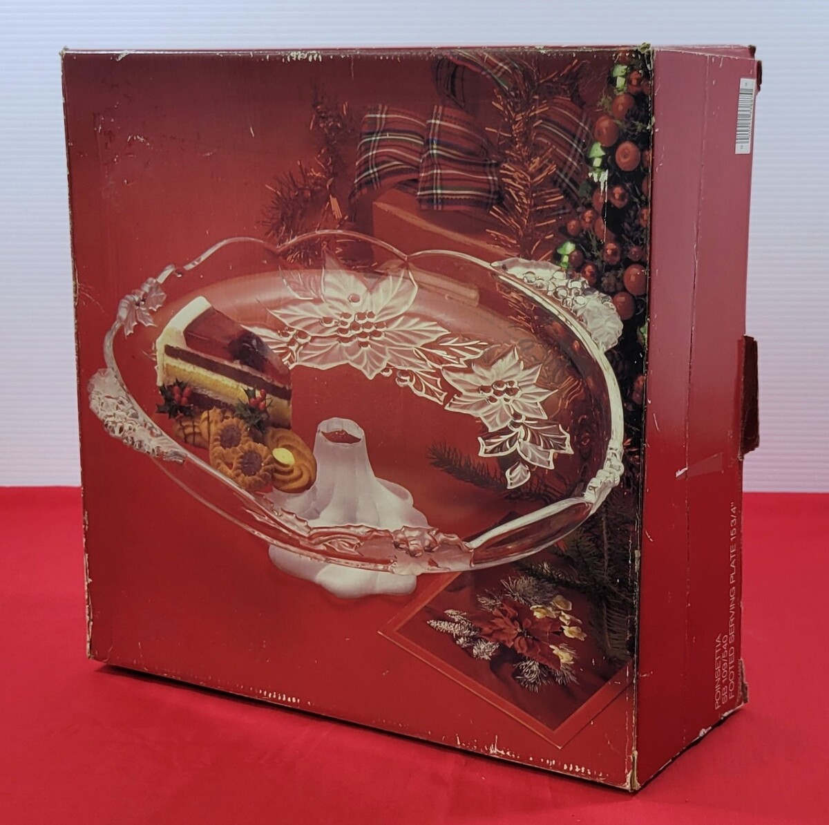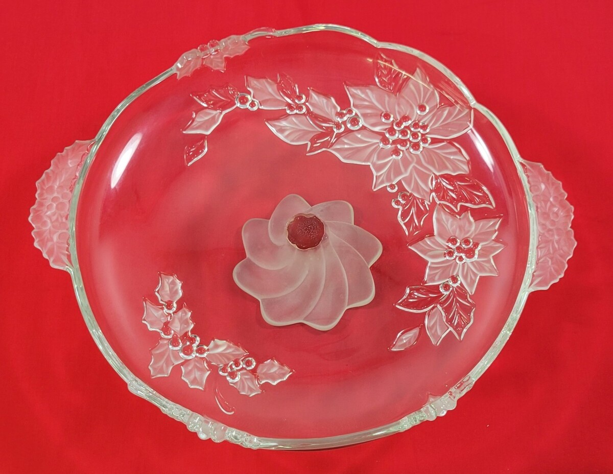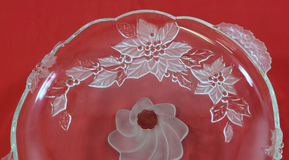 Mikasa Crystal Christmas Poinsettia Footed Pedestal Cake Serving Plate