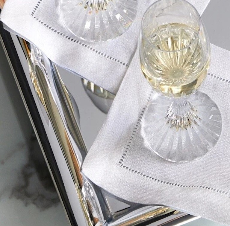 Refined hemstitched pure white linen cocktail