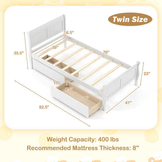 Twin Size Sleigh Bed with 2 Storage Drawers Wood Platform Bed Frame-White - Colo