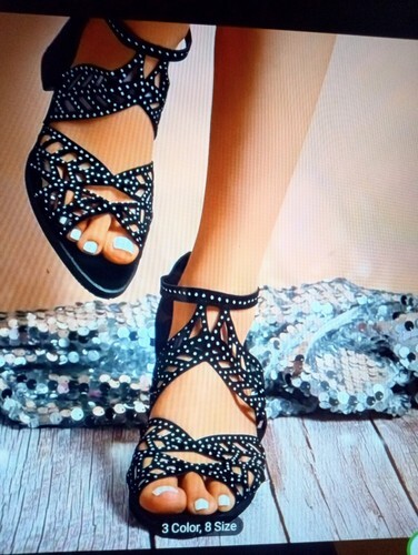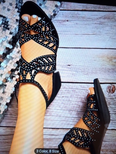 Sandals For Women Zip Back Rhinestone Cutout and similar items