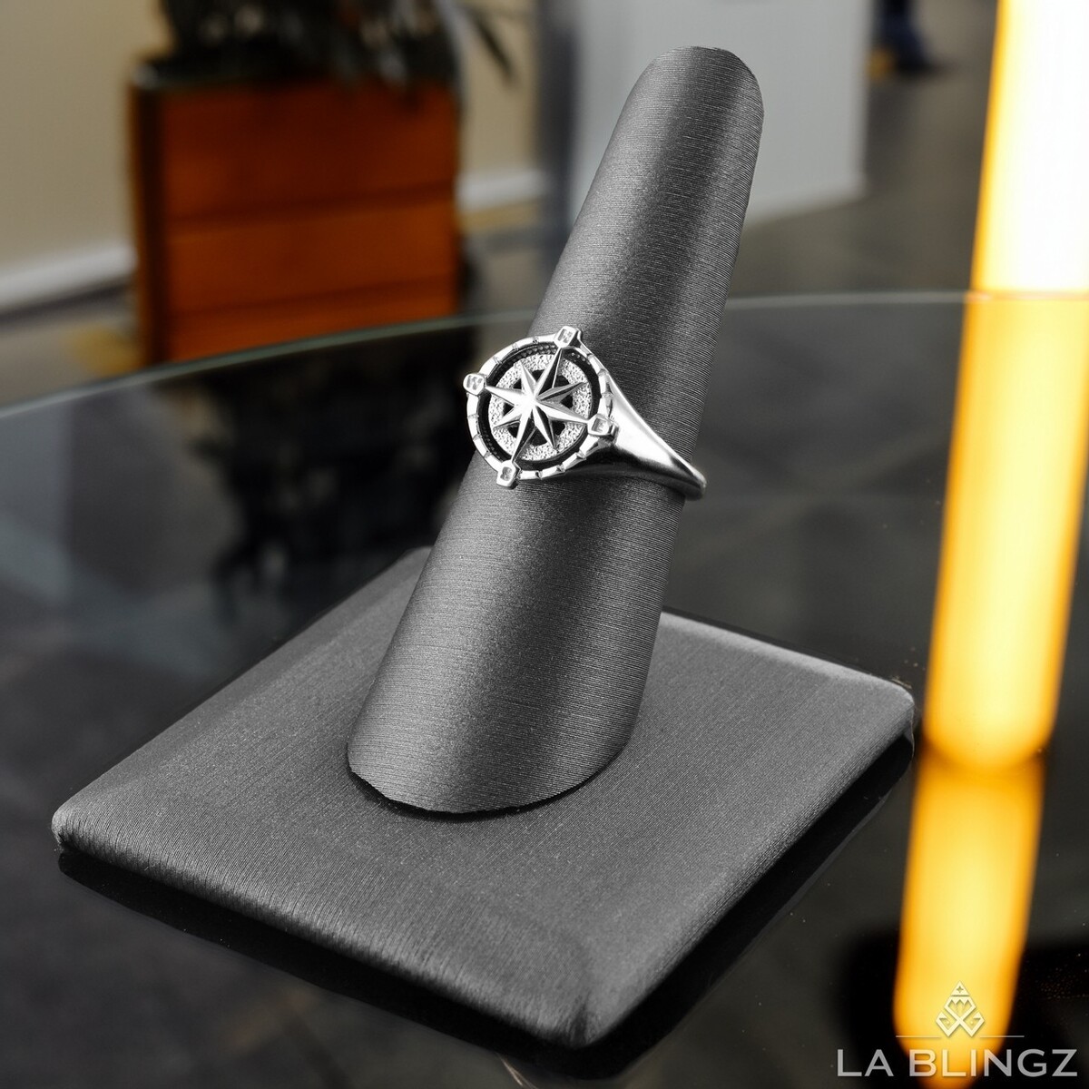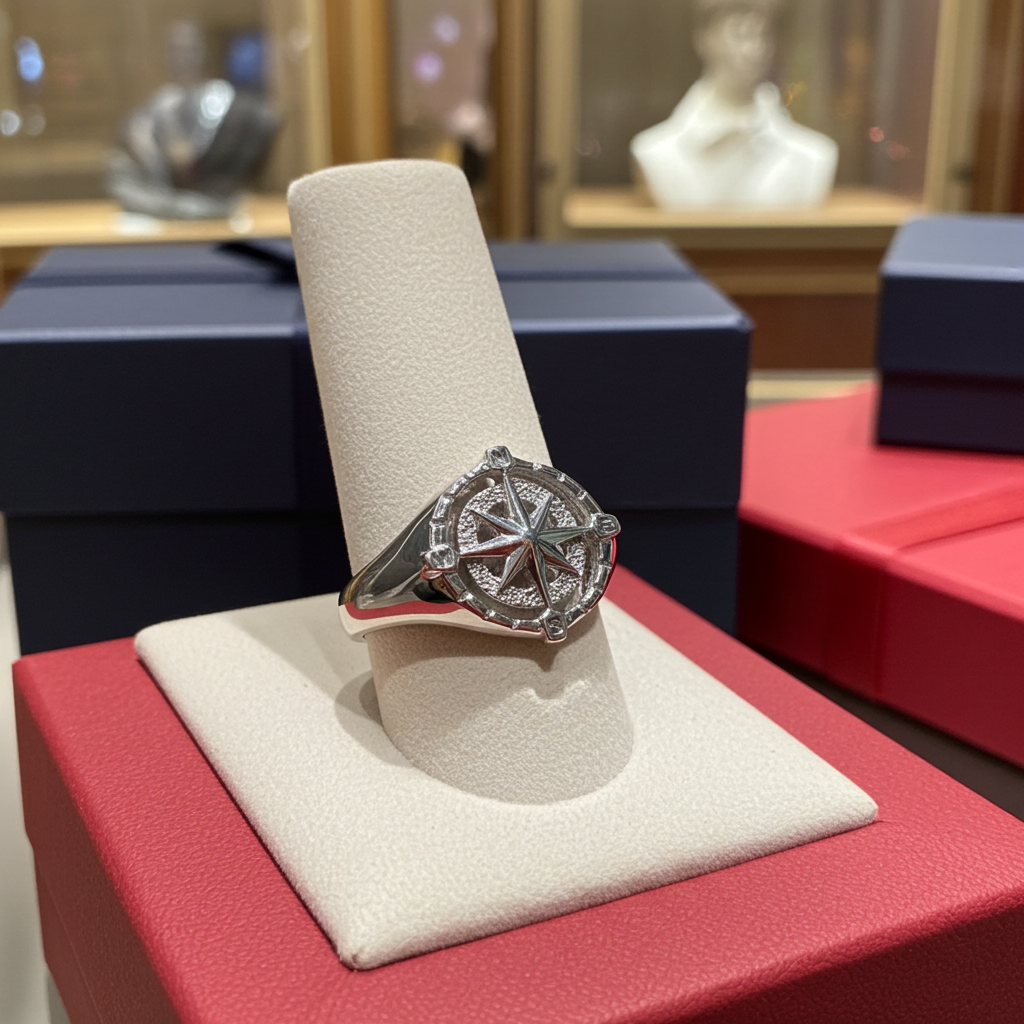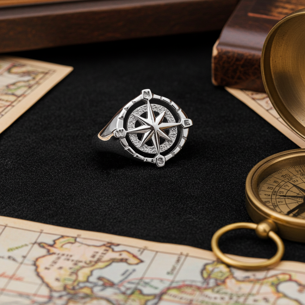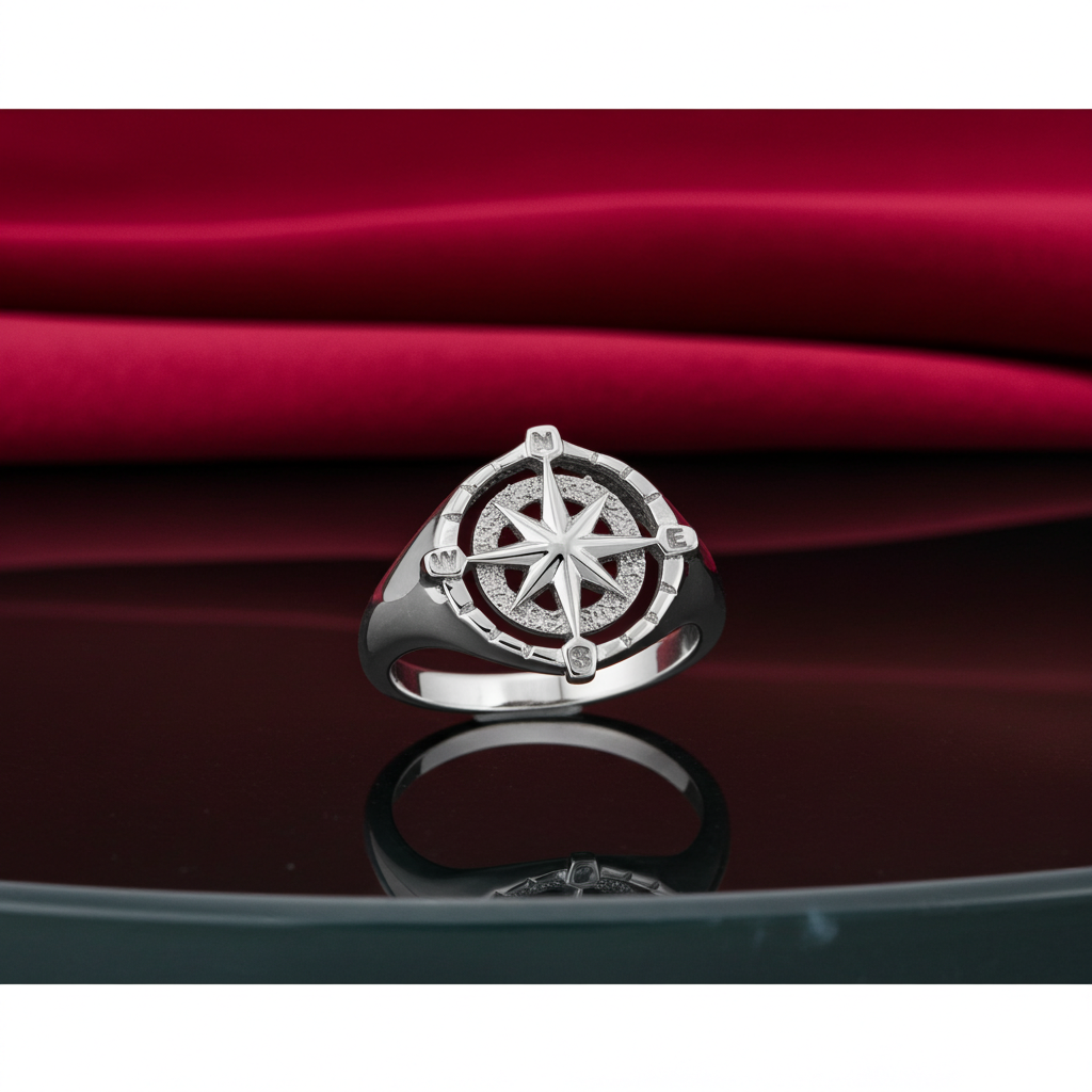 Sterling Silver Compass Ring for Women Polished North Star Compass Rose Signet