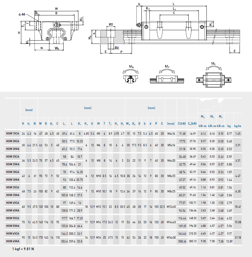 4 pcs HGW20CC Carriage( with loading un-loading plastic board)