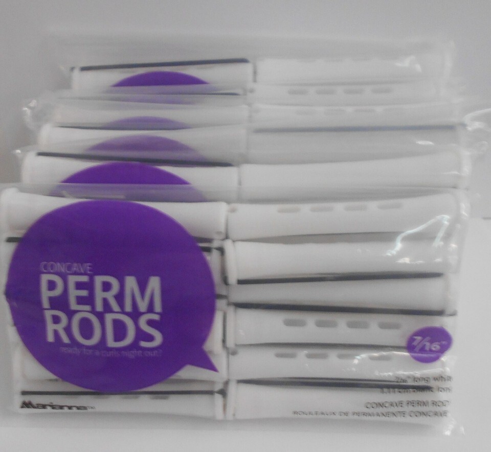 MARIANNA Short White 7/16" ~ CONCAVE PERM RODS ~ 12 Per Pack~ Lot of 4 Packs!!