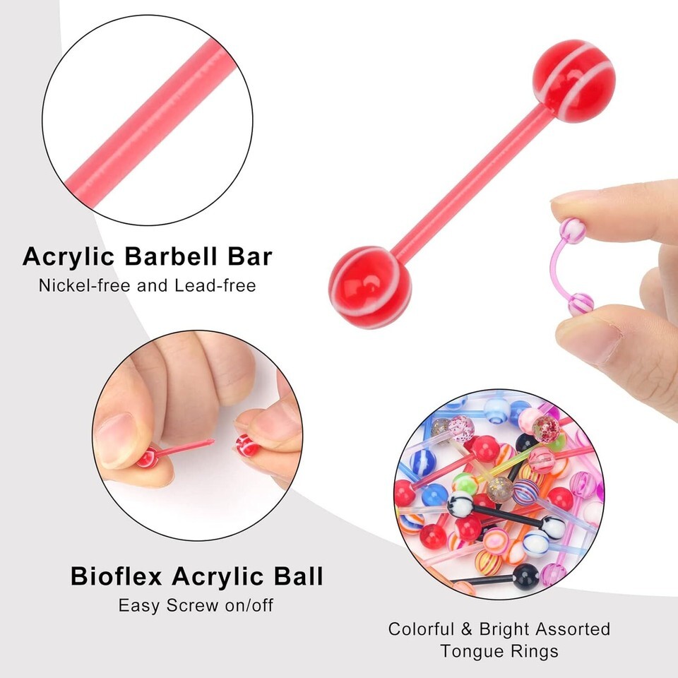 Hypoallergenic Material: the mixed tongue ring made of high quality acrylic material which is nickel-free and lead-free that you can long time wearing without worries.