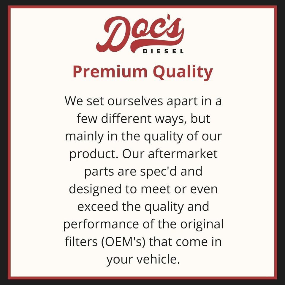 Spec'd and designed to meet or exceed your truck's original filters. Durable construction and high-flow filter media make Doc's filters a top-quality choice for drivers who want high quality parts for their truck.